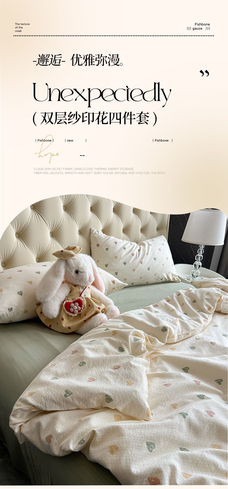 当前位置: 91家纺网 > 商品网购 > 床品套件 > 四件套 > 双层纱四件套 > 韩巢家纺 2025新款双层纱床上用品四件套热销款超柔学生宿舍床单被套三件套 浪漫世界