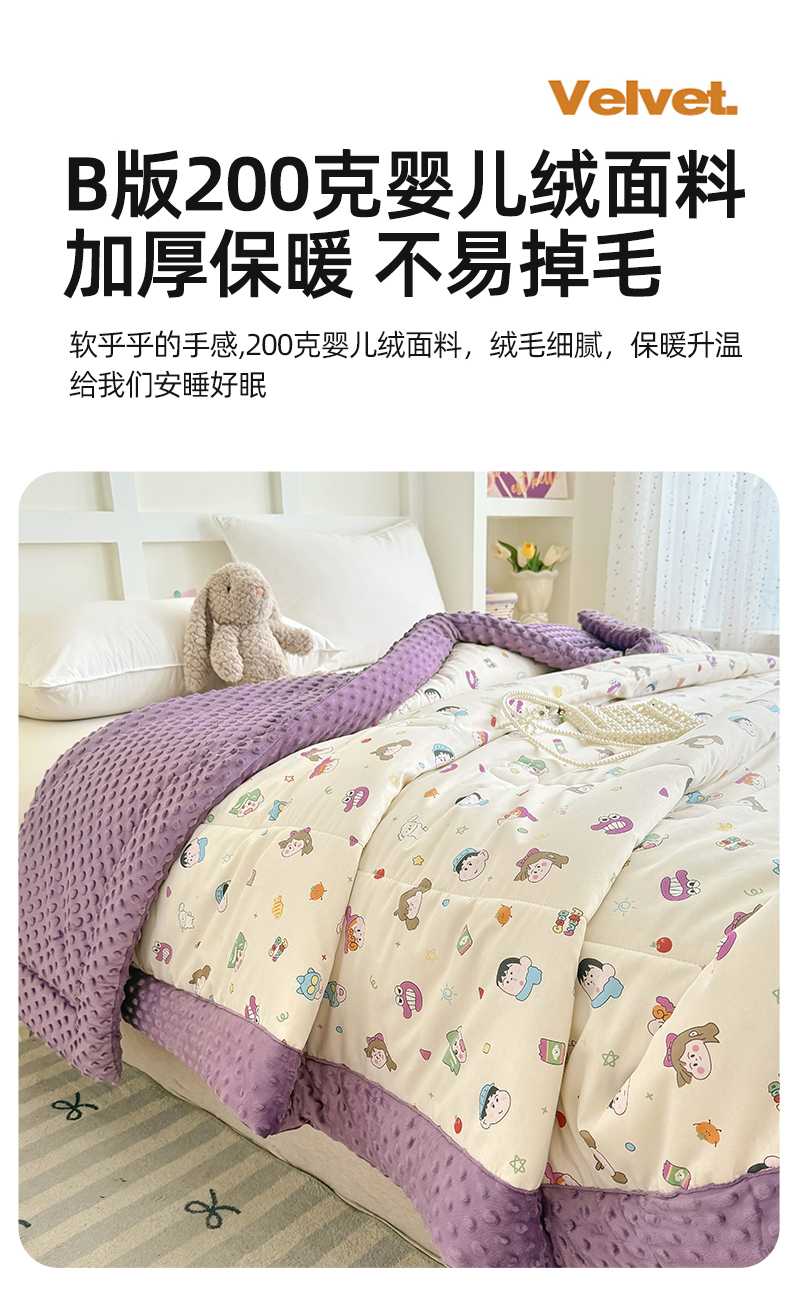 总 宜梦家居【需要买家秀请联系老板】 2025新款A类纯棉婴儿绒豆豆被四季夏凉春秋被子冬被芯,青春绽放,幸运兔,法式玫瑰,复古琉璃,好多鱼,郁金香-紫,月满西楼