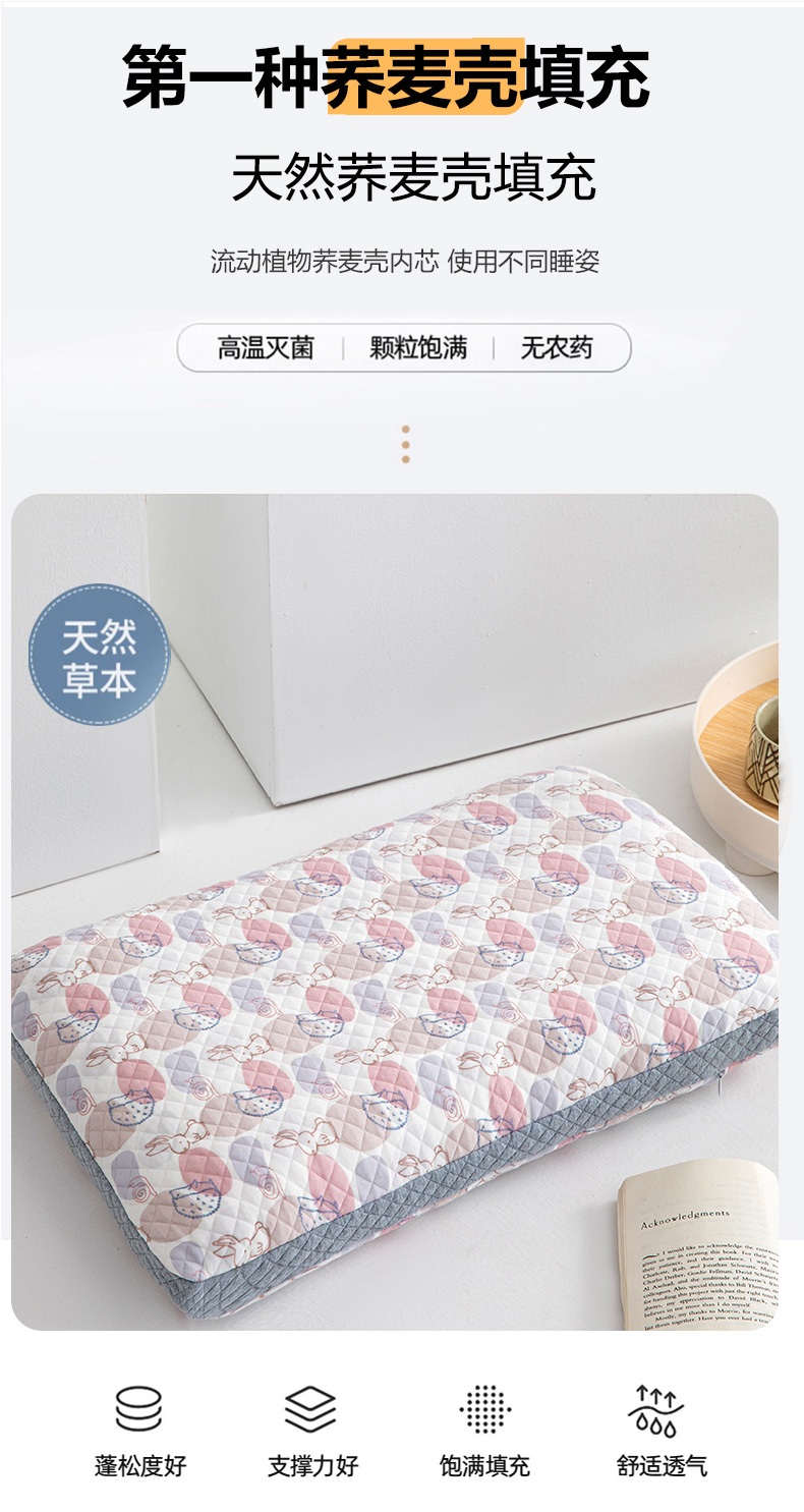 商品名称:(总)仁宇枕业 2025新款新品A类全棉针织棉彩色卡通儿童学生幼儿园全荞麦枕头枕芯