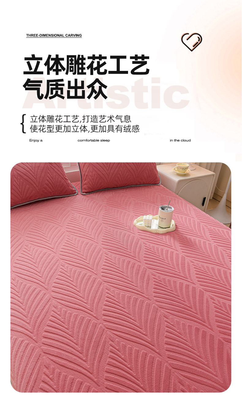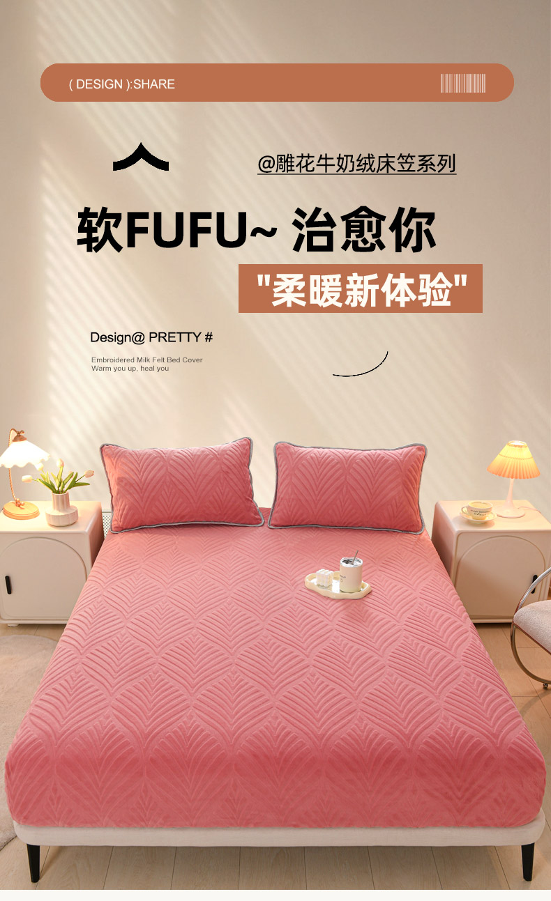• 91家纺网 家纺一手货源 找家纺 推推家纺 2025新款雕花加厚牛奶绒床笠 枫叶偏偏-豆沙