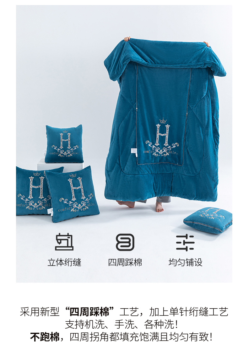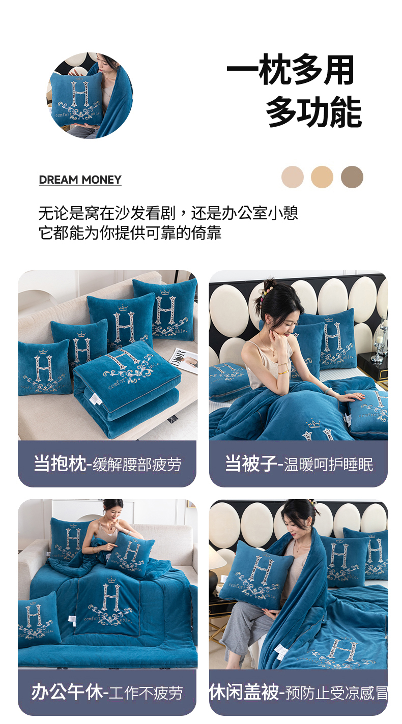 商品名称:照世家纺 2025新款牛奶绒简约复古款抱枕被 深灰