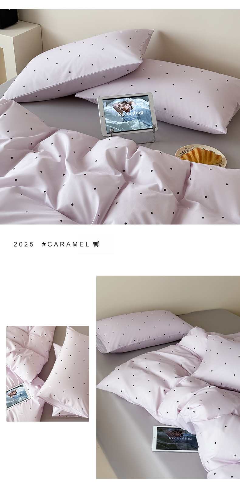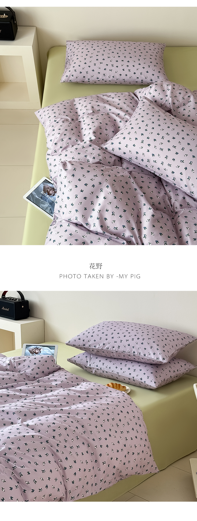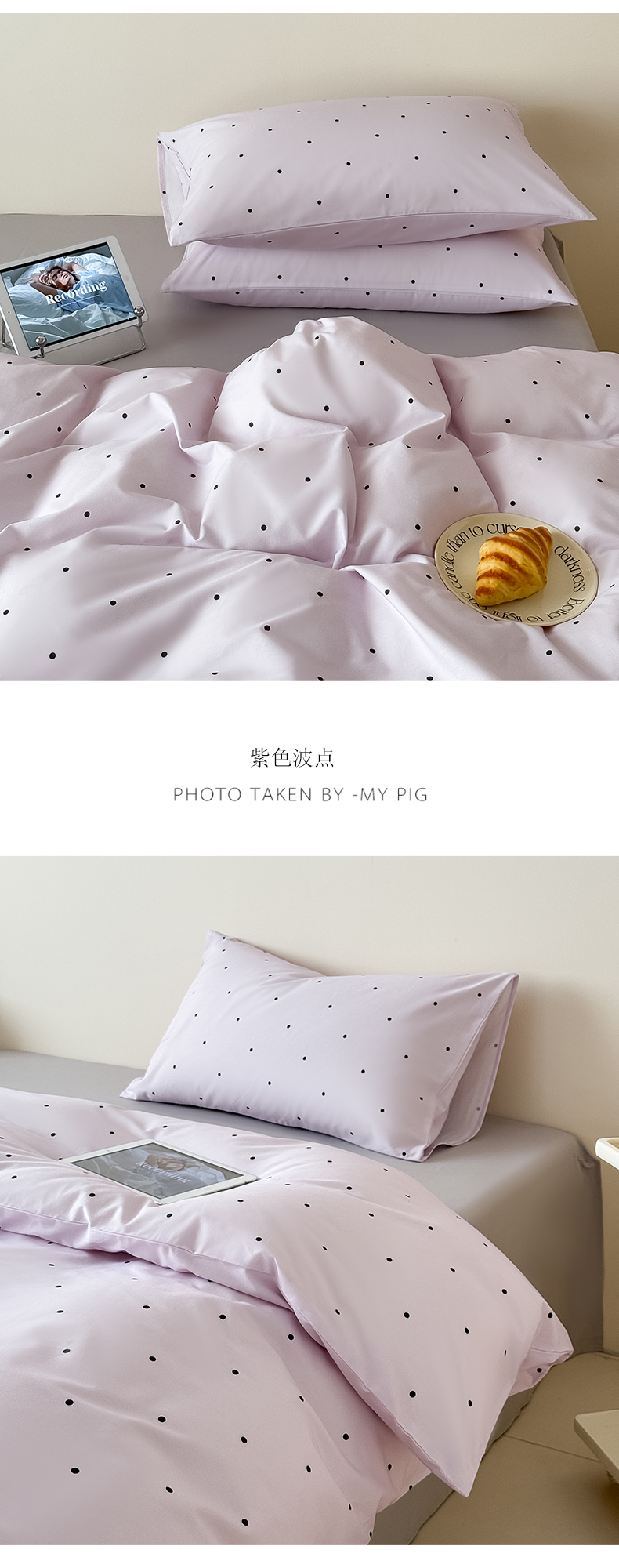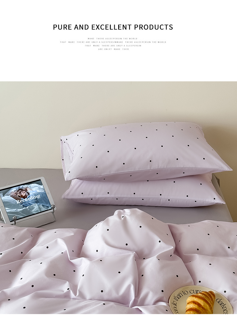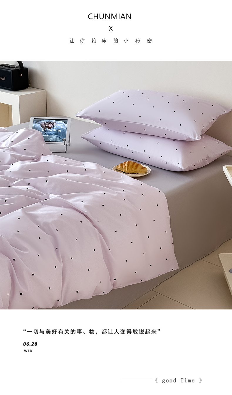 商品名称:Mr.pig猪先生水洗棉 2025新款小清新全棉四件套 紫色波点