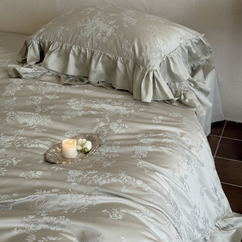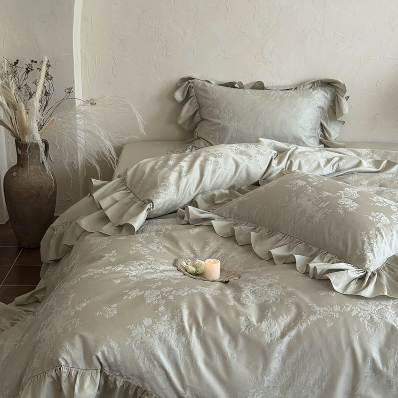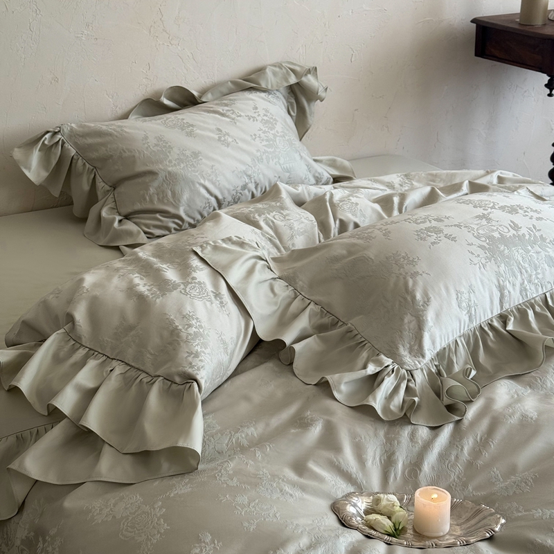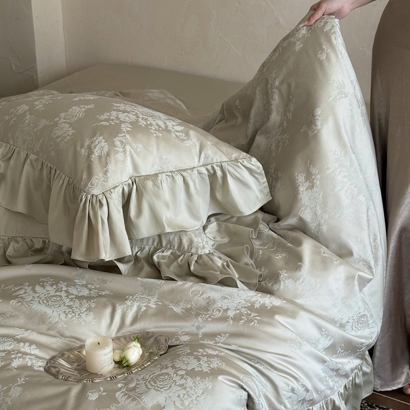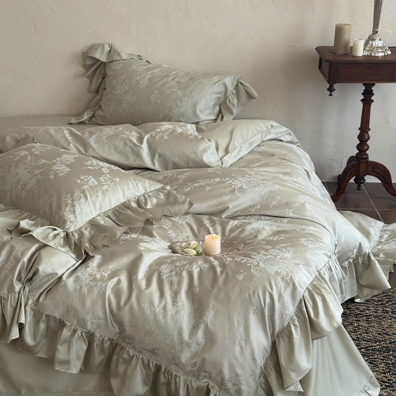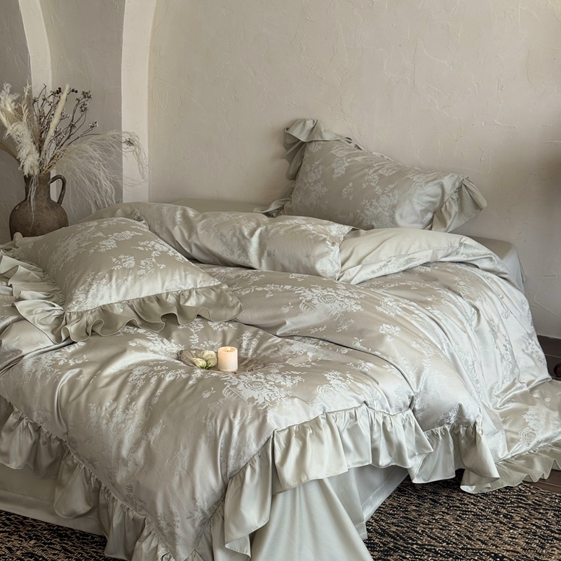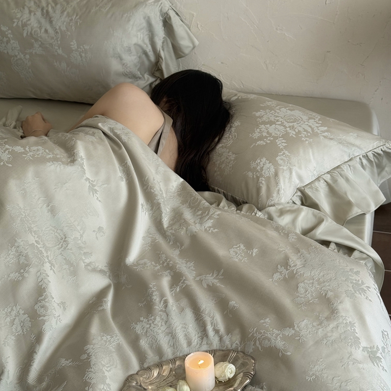 MIU缪家居 2025新款100支全棉厚织提花四件套-花瓣雨-花园秘境 仙踪绿