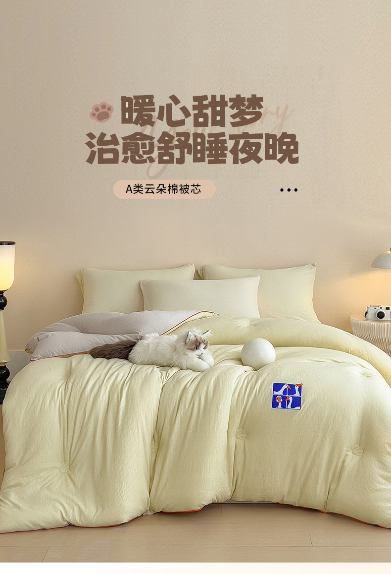 (总)米菲 2025新款A类云朵棉被芯冬被被芯-小清新,小新控-柠檬黄,小新控-青草绿,小新控-樱花粉