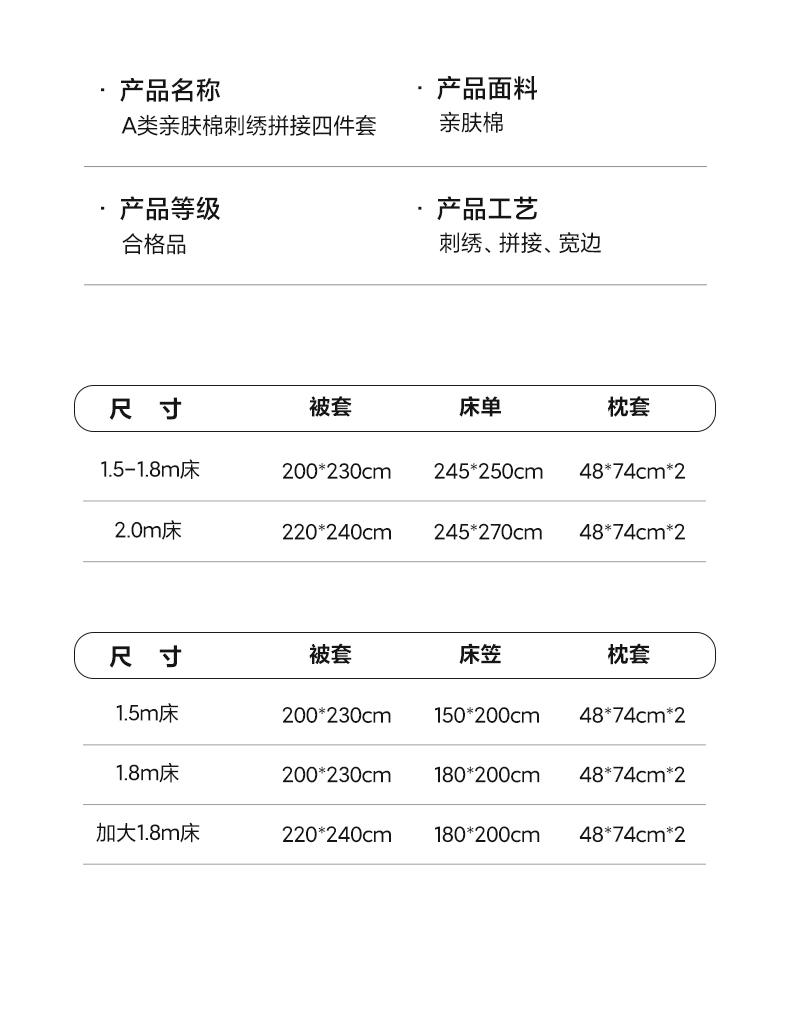 1.8m床笠款被套加大四件套 | ¥150.00 |
