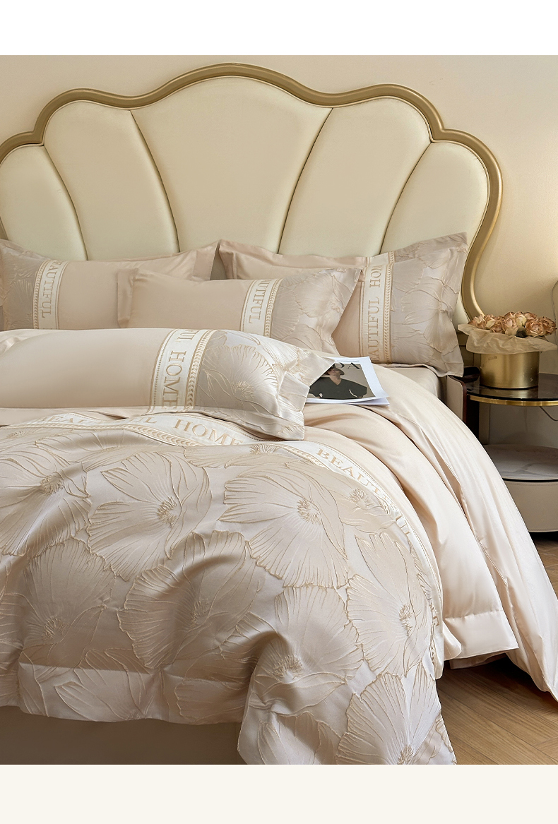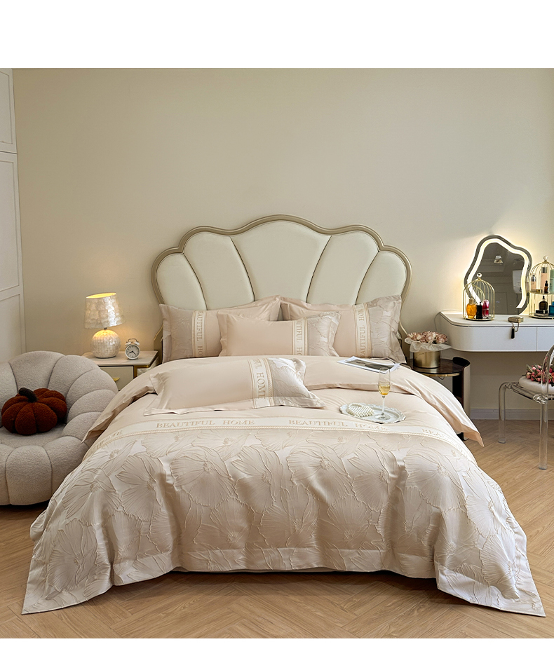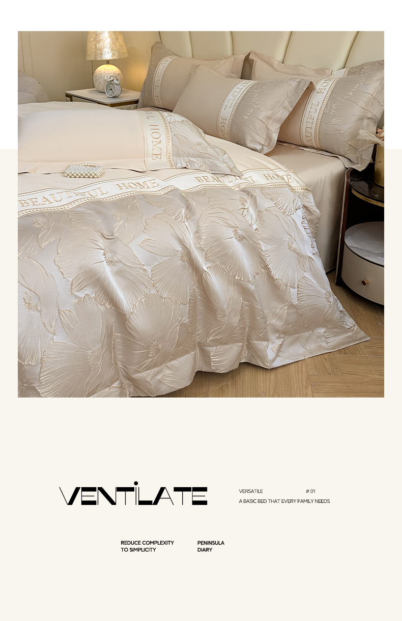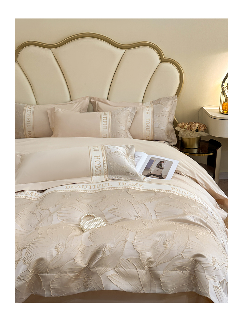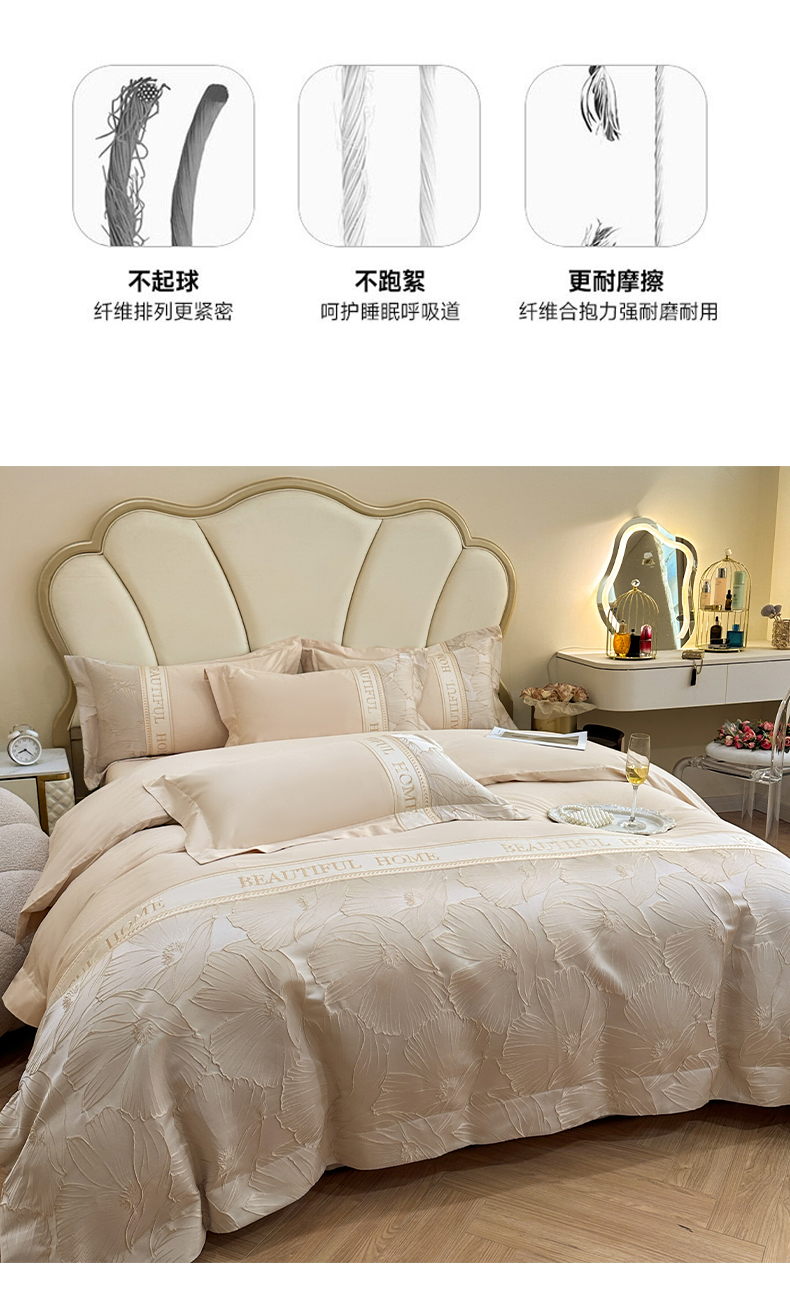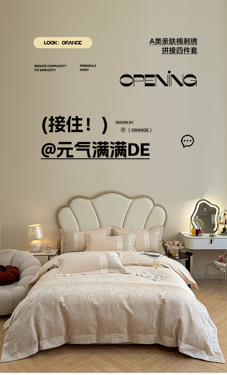当前位置: 91家纺网 > 商品网购 > 床品套件 > 四件套 > 其它四件套 > (总)女子家纺 2025新款亲肤棉立体浮雕刺绣拼接四件套-东方树叶系列