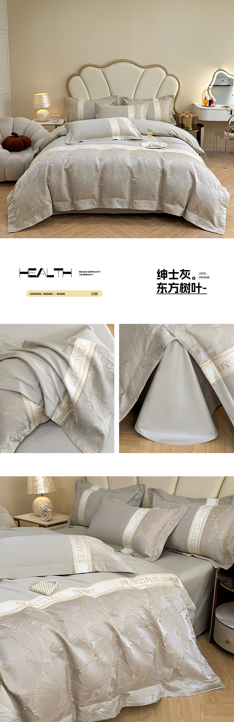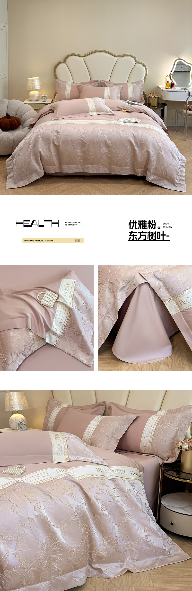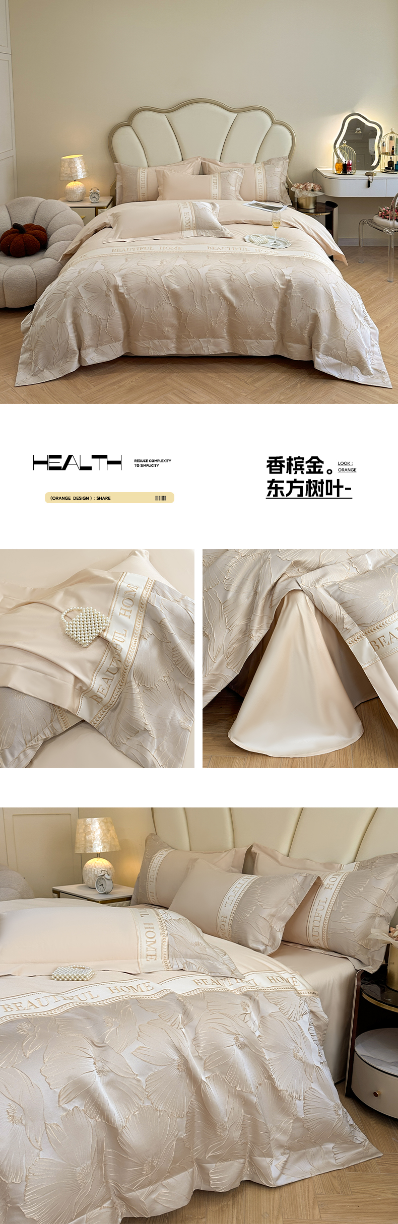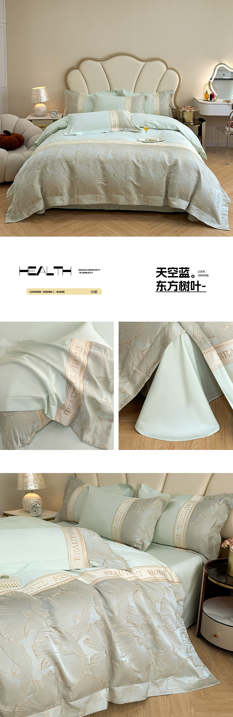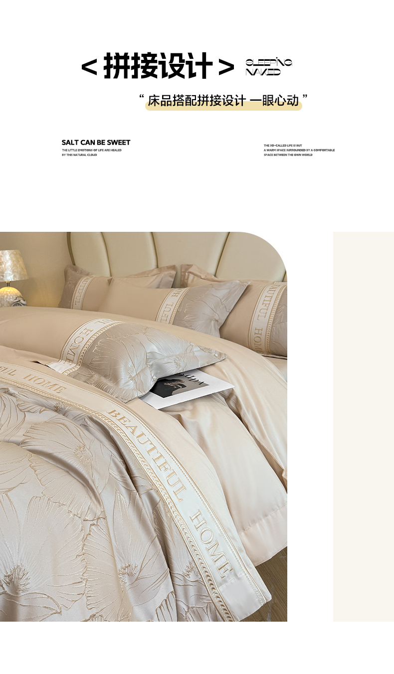当前位置: 91家纺网 > 商品网购 > 床品套件 > 四件套 > 其它四件套 > (总)女子家纺 2025新款亲肤棉立体浮雕刺绣拼接四件套-东方树叶系列