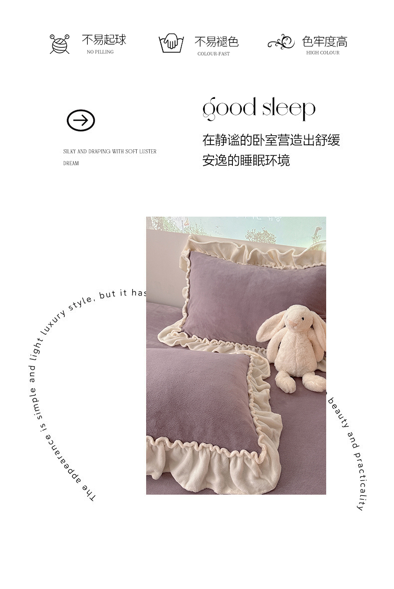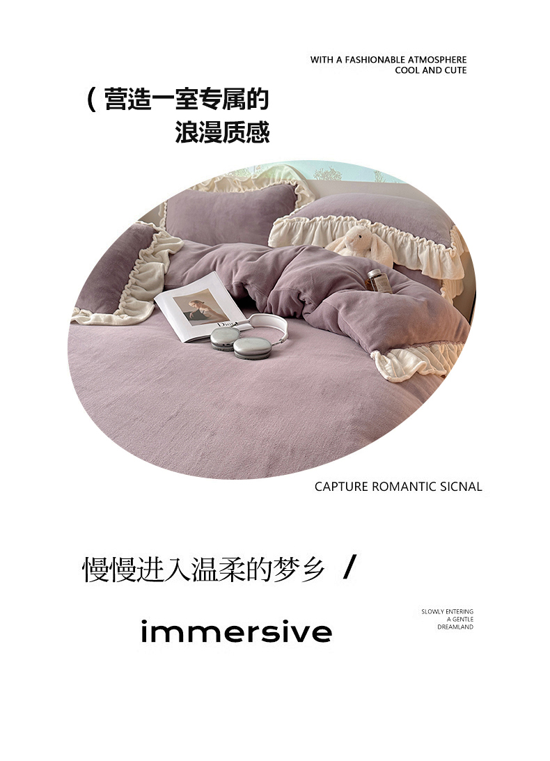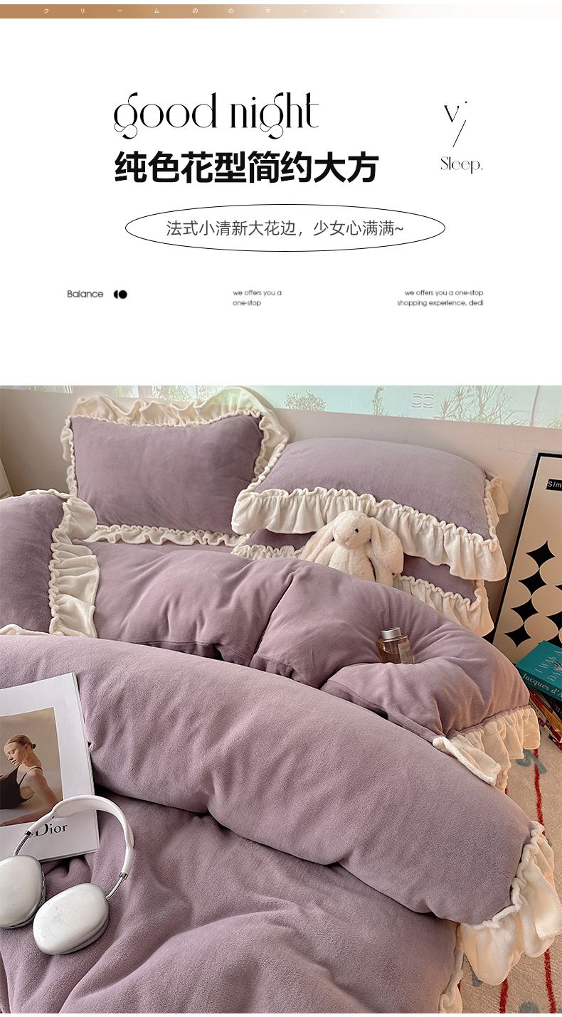 当前位置: 91家纺网 > 商品网购 > 床品套件 > 四件套 > 牛奶绒四件套 > 六巷胡同 2025新款A类法式小清新纯色牛奶绒花边款四件套 花边款-香芋紫