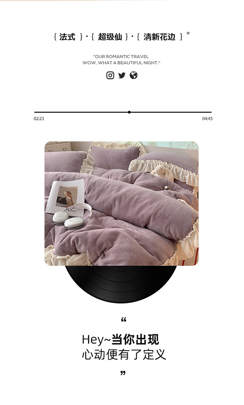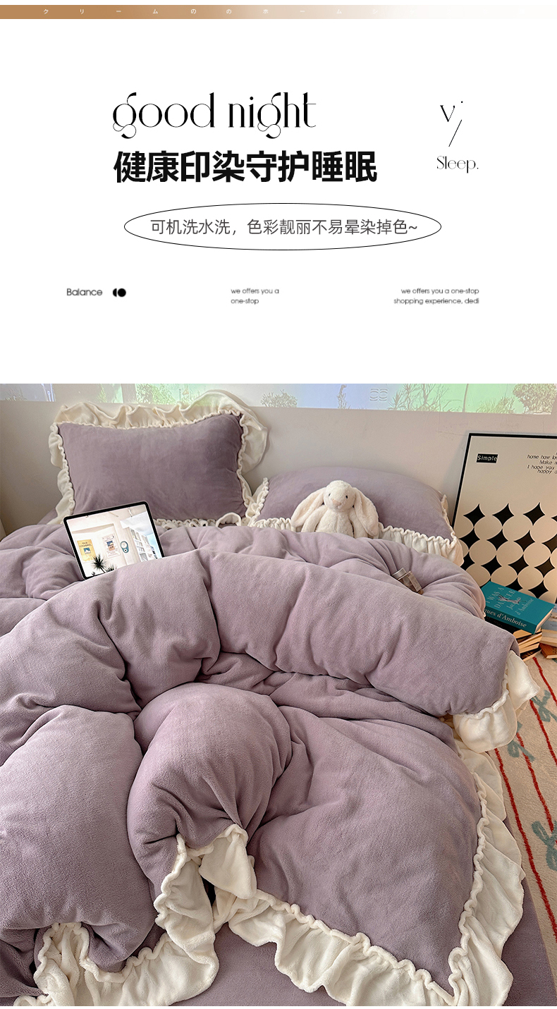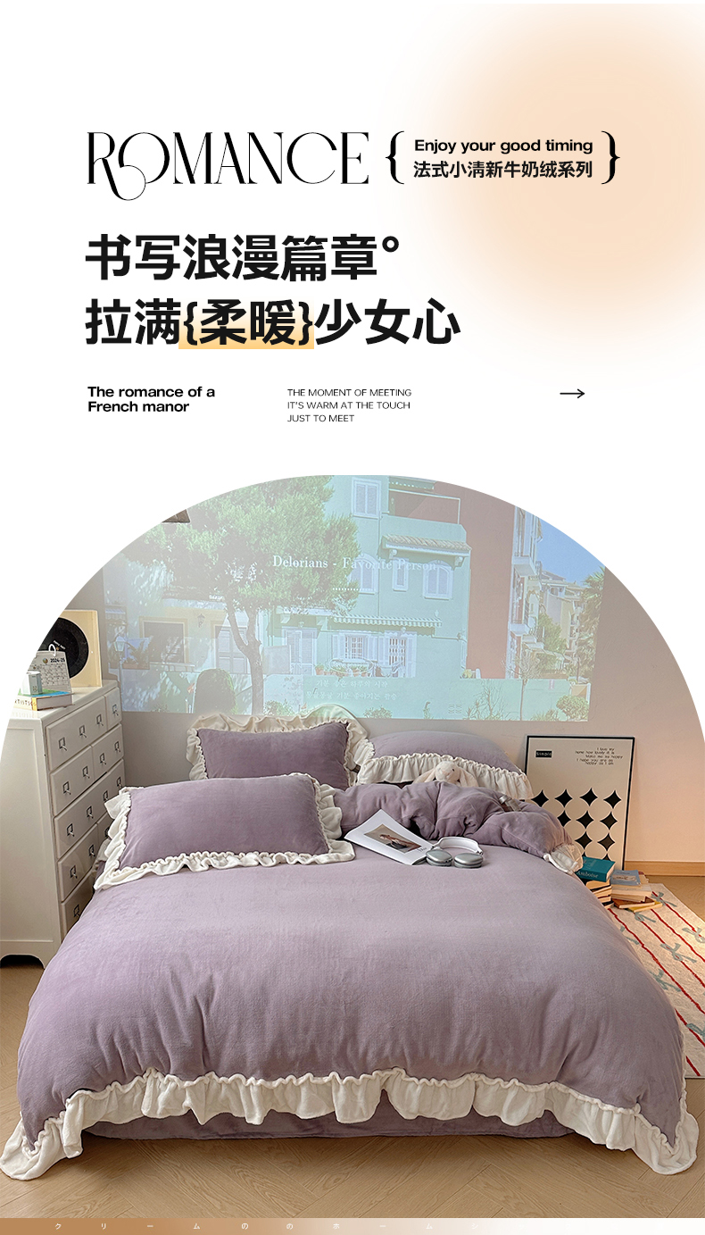 当前位置: 91家纺网 > 商品网购 > 床品套件 > 四件套 > 牛奶绒四件套 > 六巷胡同 2025新款A类法式小清新纯色牛奶绒花边款四件套 花边款-香芋紫