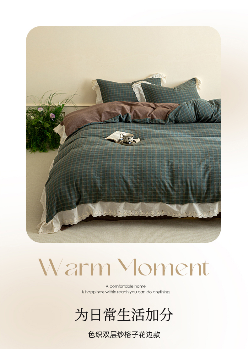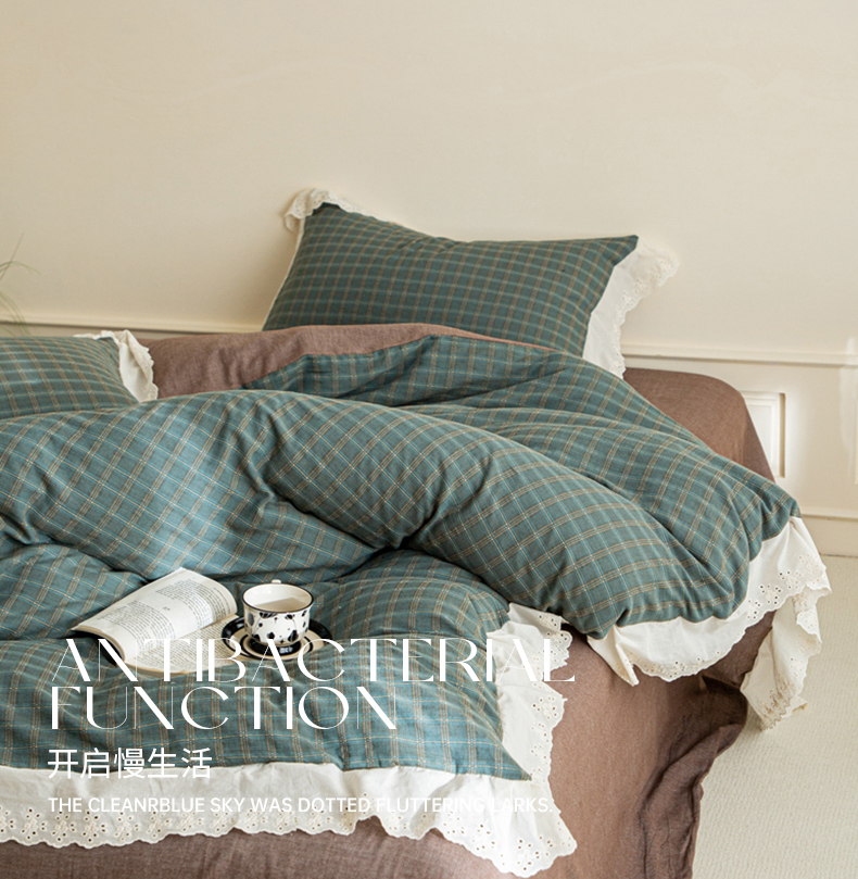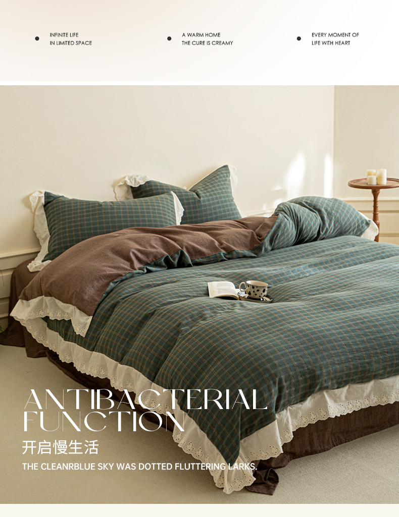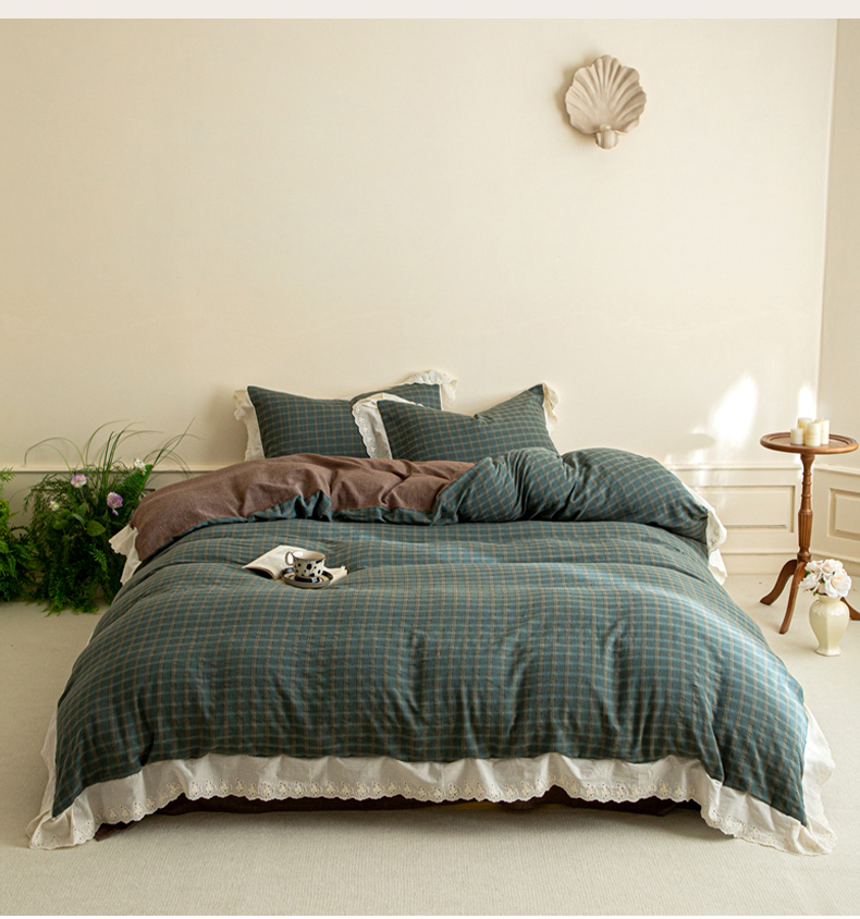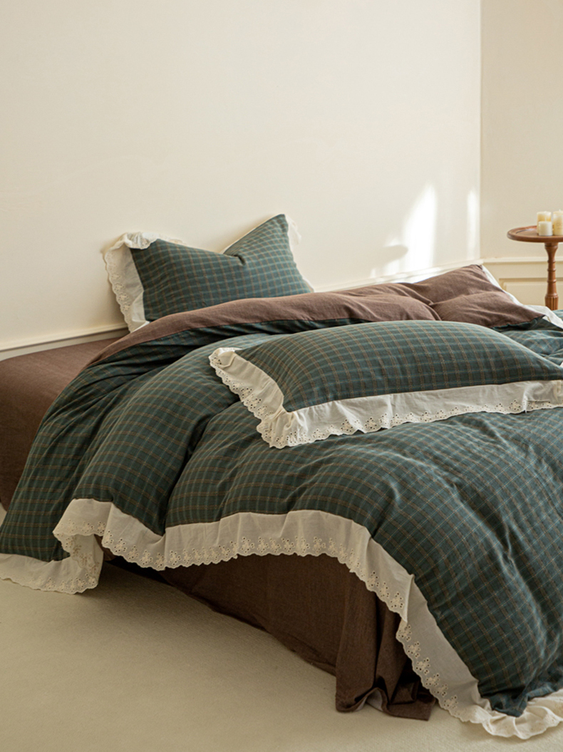 棉眠 2025新款全棉色织双层纱格子法式大花边款 海莉-绿