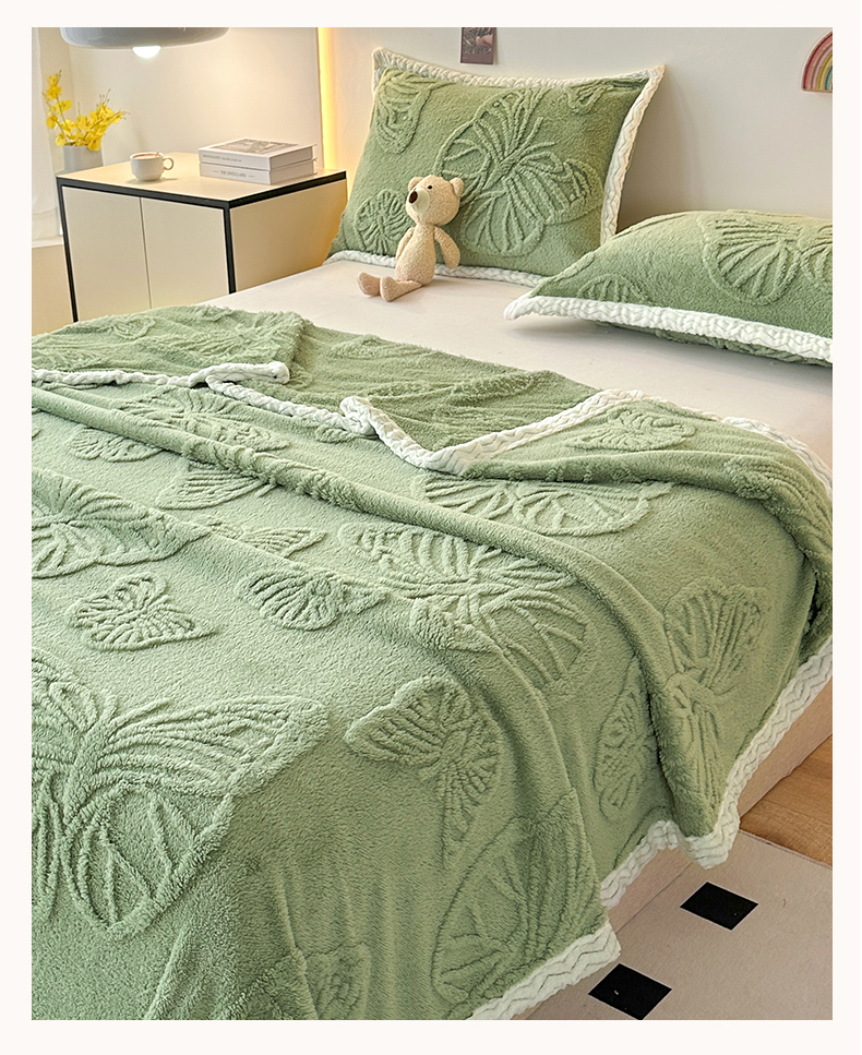 栩裕纺织 2025新款塔芙绒蝴蝶提花毛毯包边款 莫奈紫