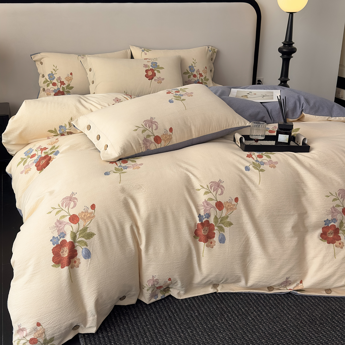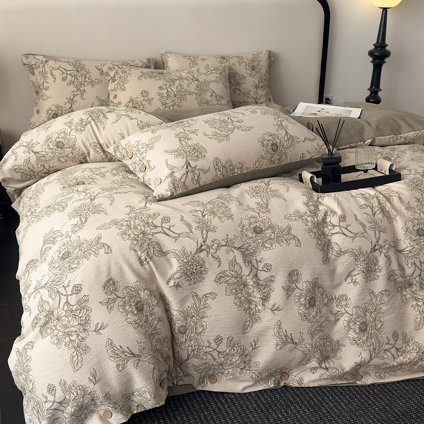 禧多家纺 2025新款提花原柔麻四件套纽扣款 珐澜
