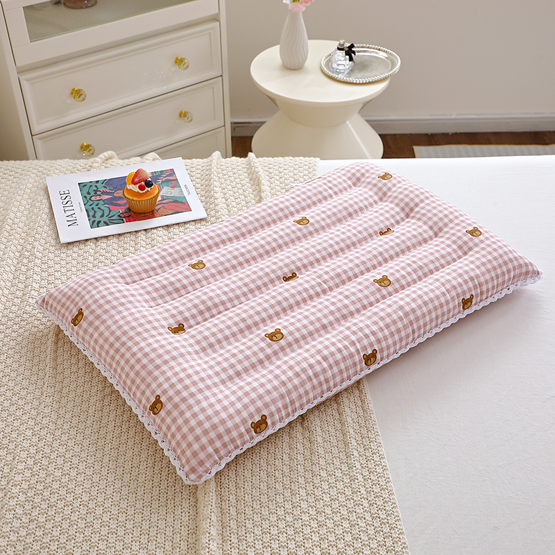 卓昌枕芯 2025新款定型蕾丝磨毛花边枕枕头枕芯 小熊-粉