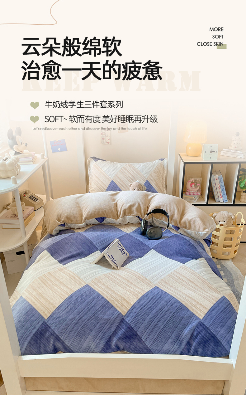 当前位置: 91家纺网 > 商品网购 > 床品套件 > 三件套 > 锦润家纺 2025新款亲肤舒适牛奶绒三件套学生三件套上下铺三件套宿舍三件套 晨晓