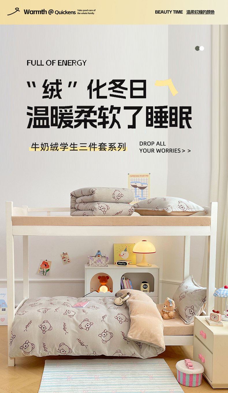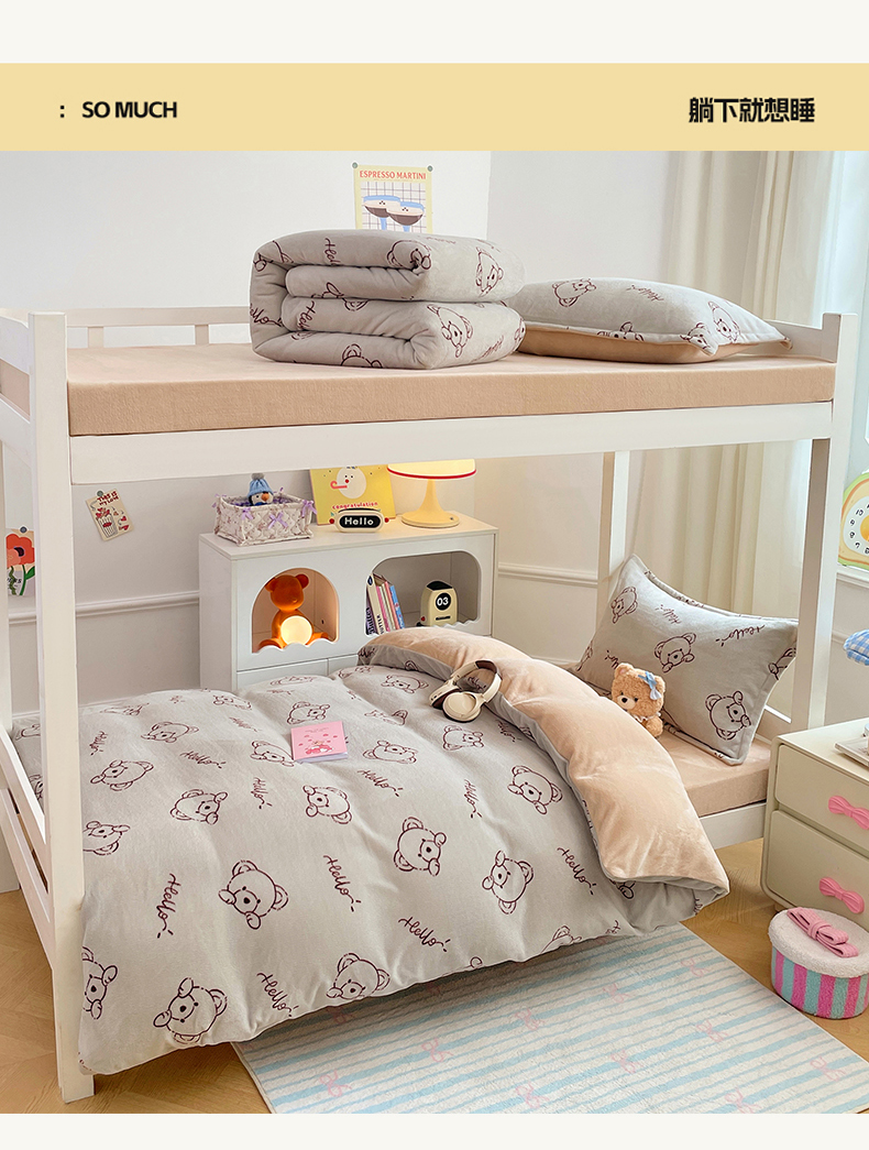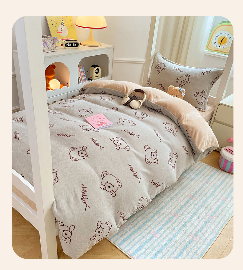 当前位置: 91家纺网 > 商品网购 > 床品套件 > 三件套 > 锦润家纺 2025新款亲肤舒适牛奶绒三件套学生三件套上下铺三件套宿舍三件套 可爱熊