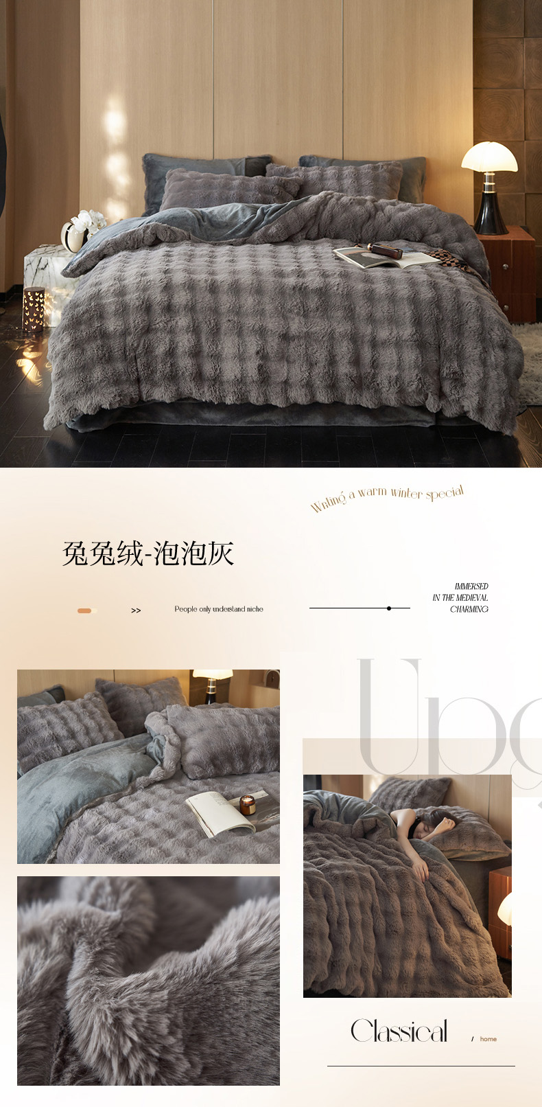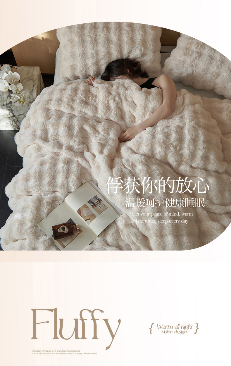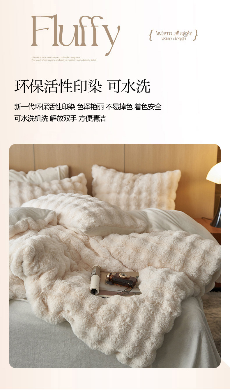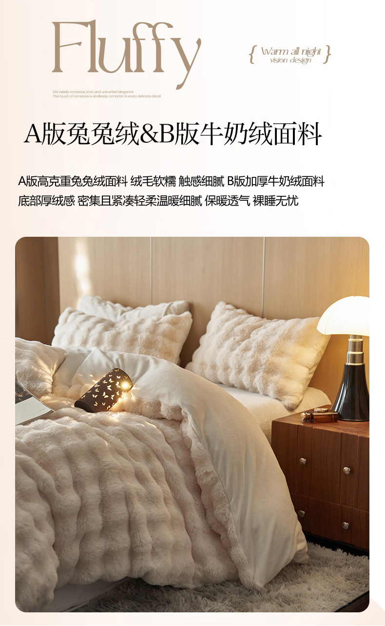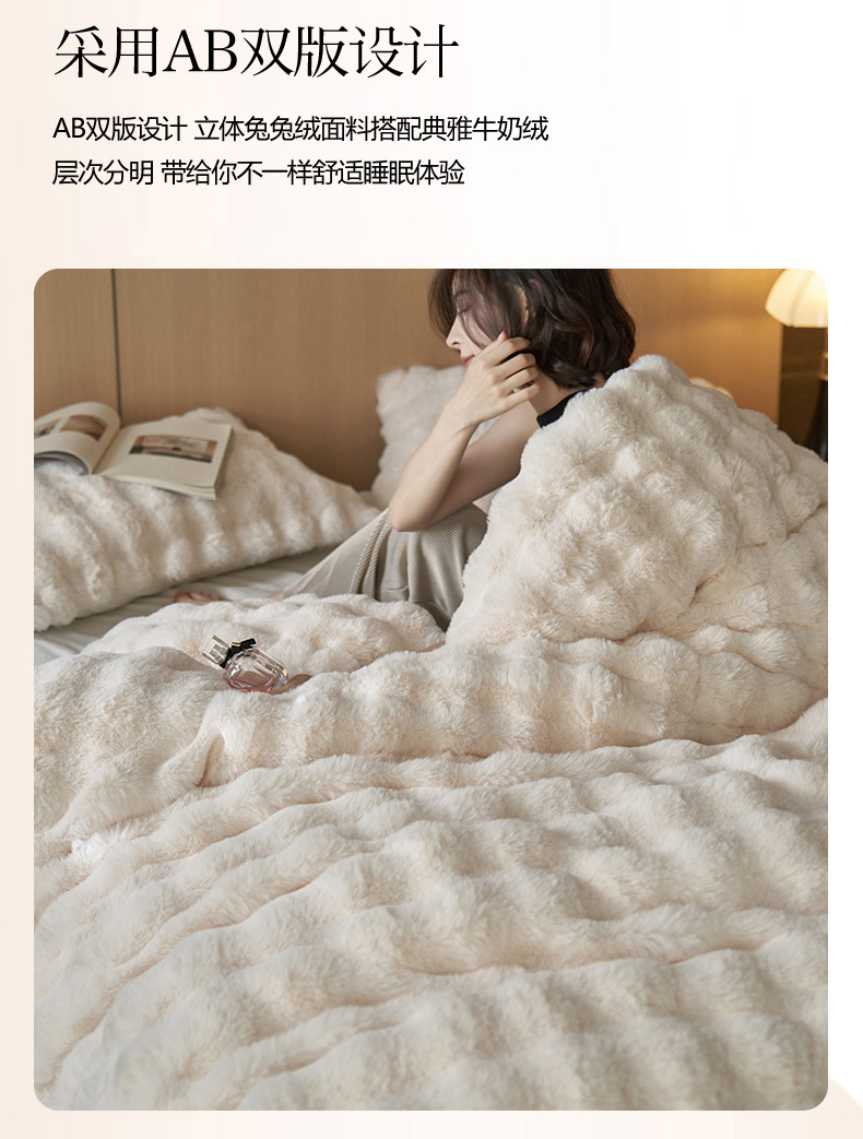 商品名称:眠博士 2025新款兔兔牛奶绒加厚保暖四件套 兔兔绒-泡泡白