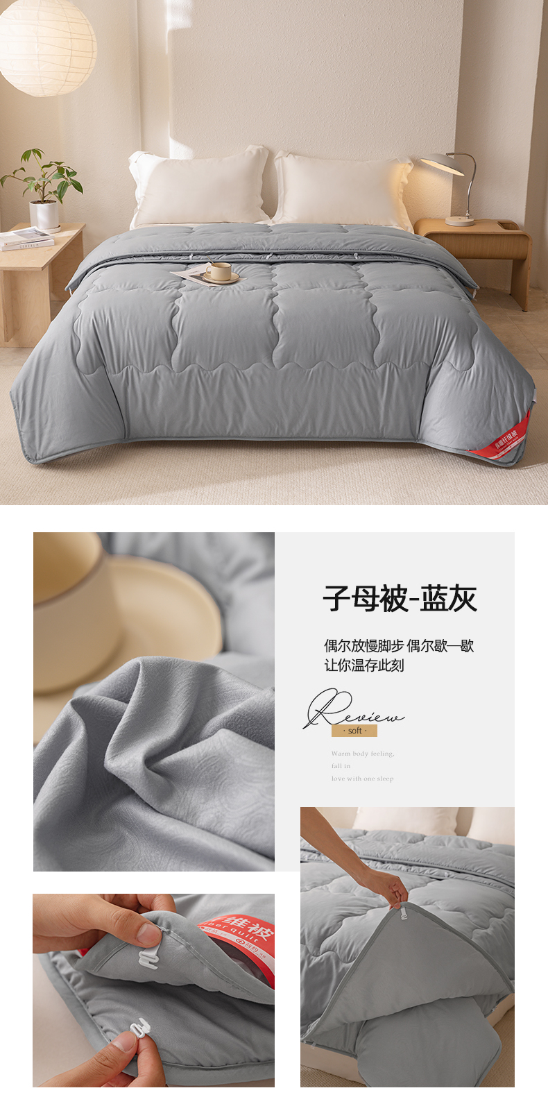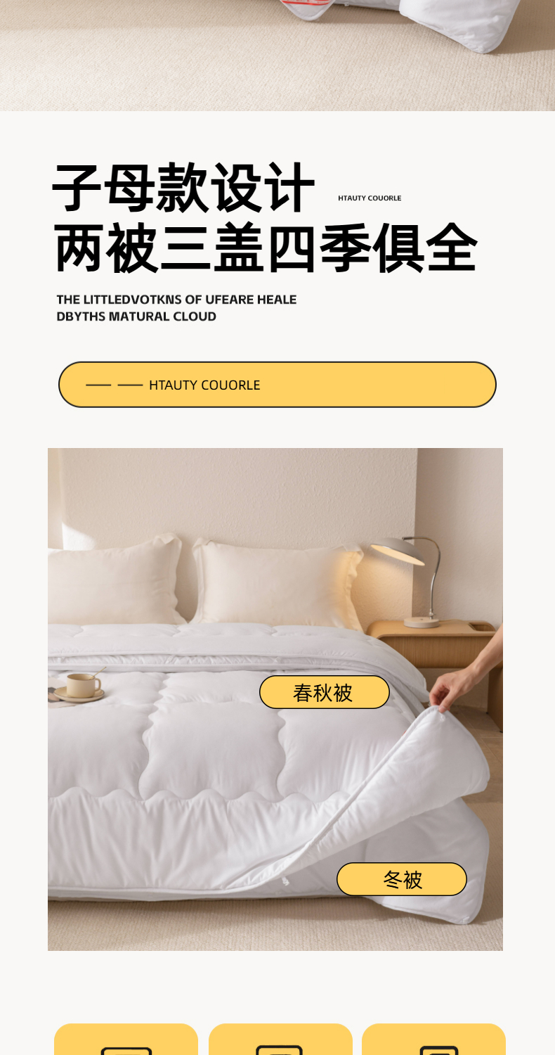 (总)天瑜家纺 2025新款磨毛冬被二合一子母被被子被芯,白色,蓝灰色,米黄色