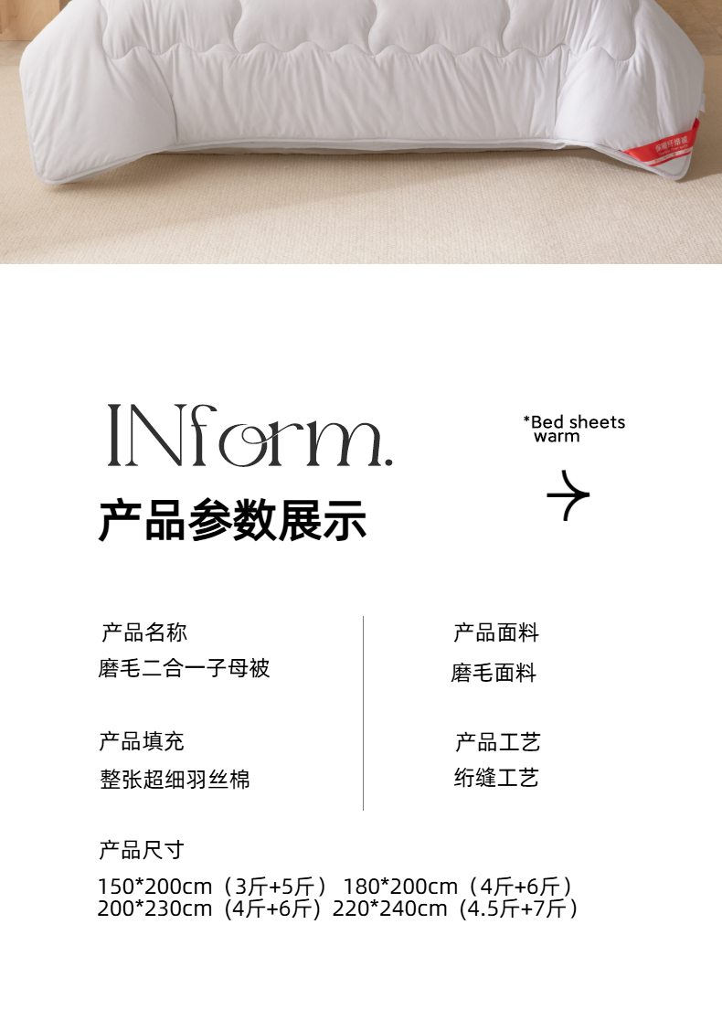 • 91家纺网 家纺一手货源 找家纺 天瑜家纺 2025新款磨毛冬被二合一子母被被子被芯 白色 91家纺网 家纺一手货源 找家纺 天瑜家纺 2025新款磨毛冬被二合一子母被被子被芯 白色