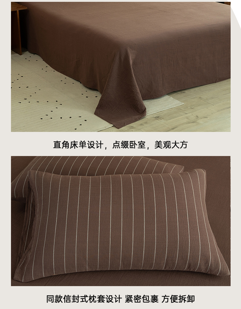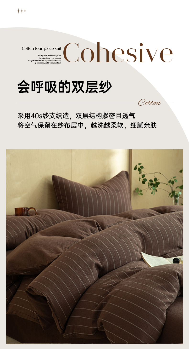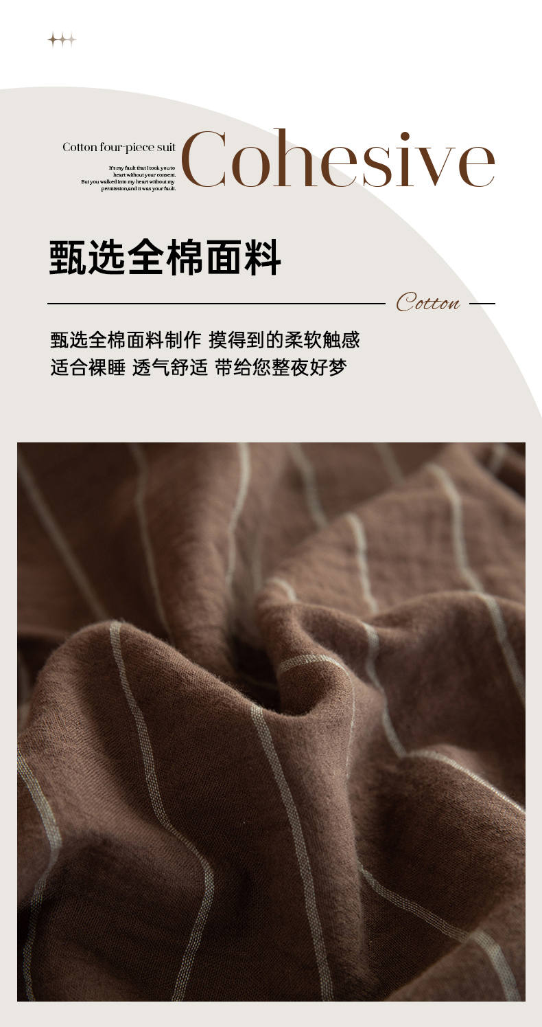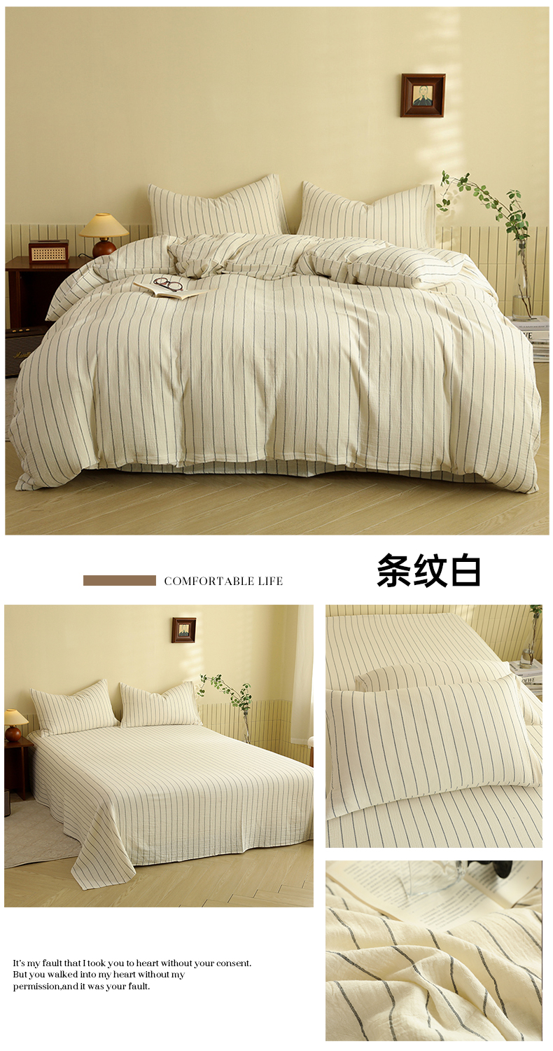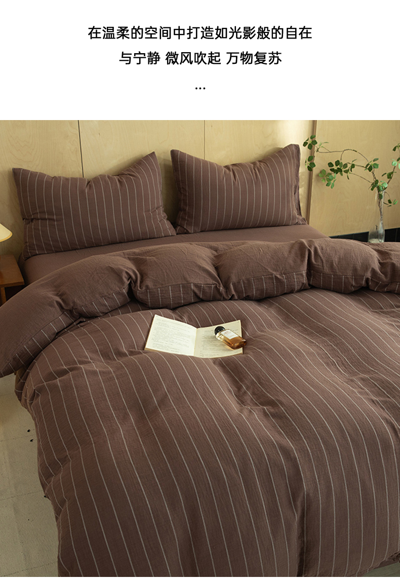 [91家纺网精选] 新款色织条纹双层纱四件套,条纹白,条纹咖,条纹驼