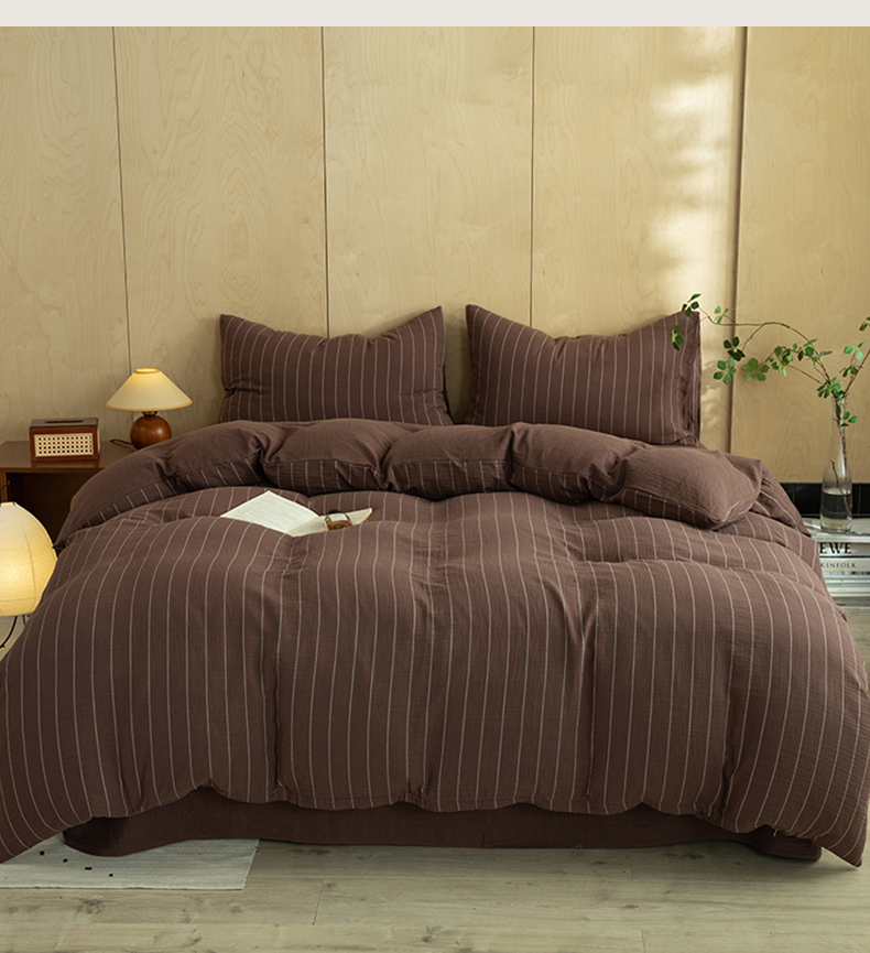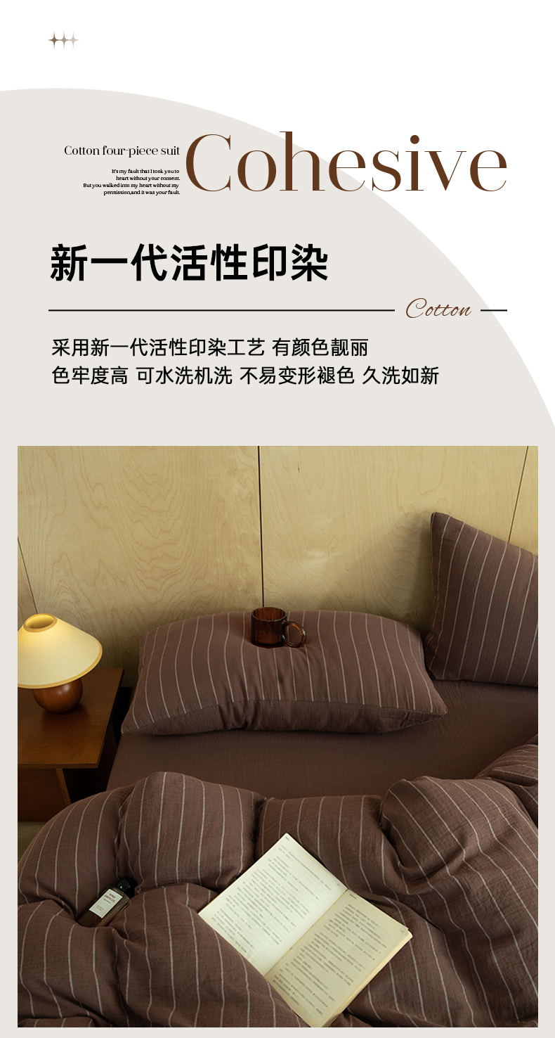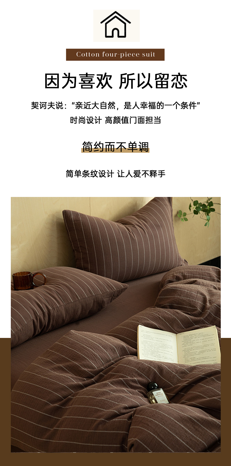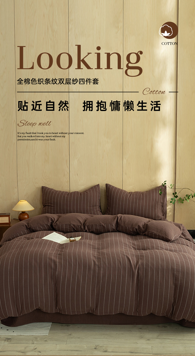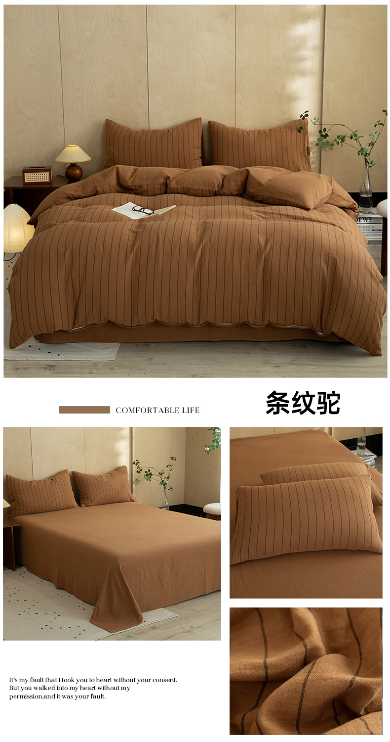[91家纺网精选] 新款色织条纹双层纱四件套,条纹白,条纹咖,条纹驼