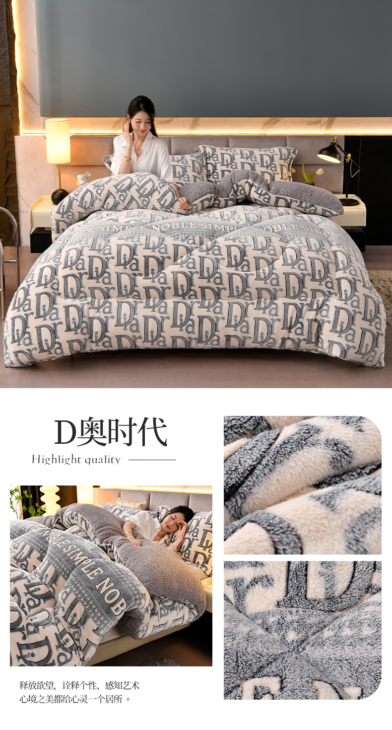 • 91家纺网 家纺一手货源 找家纺 南北家居 2025新款AB版雪花绒羊羔绒冬被被子被芯 爱心满满
