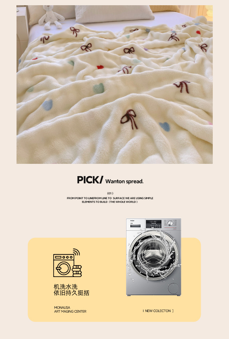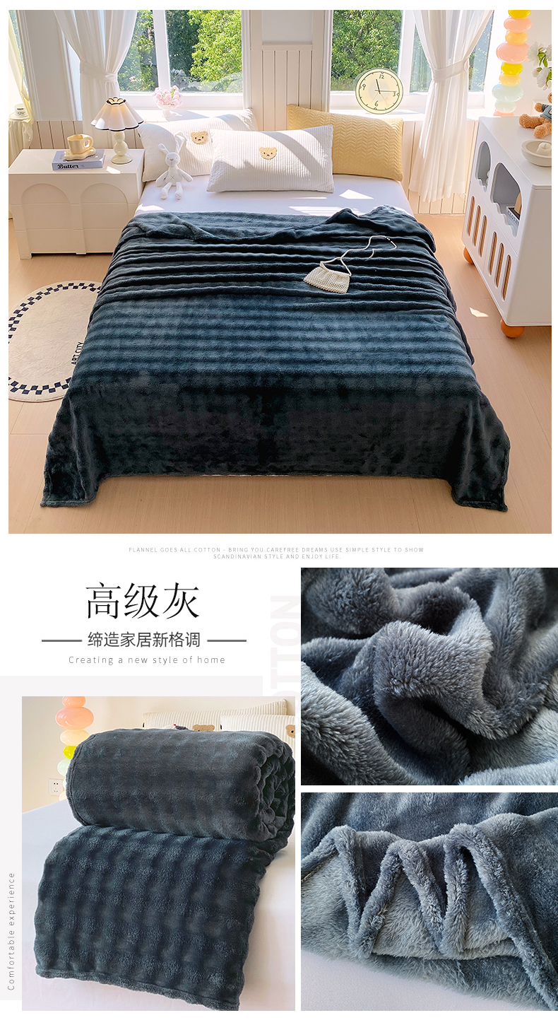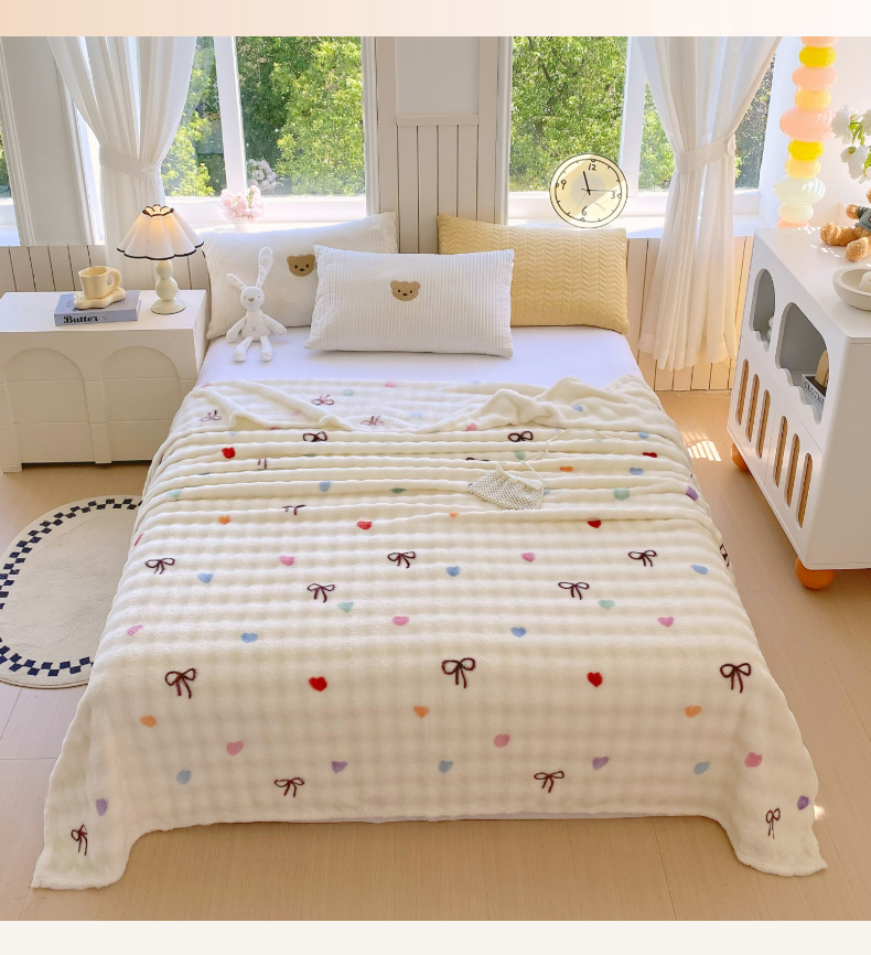 爱彼家纺 2025秋冬新款高克重简约印花泡泡绒毯多功能毯毛毯毯子 香槟色