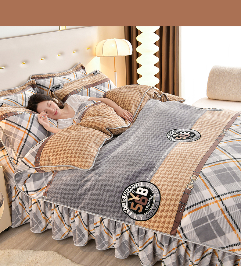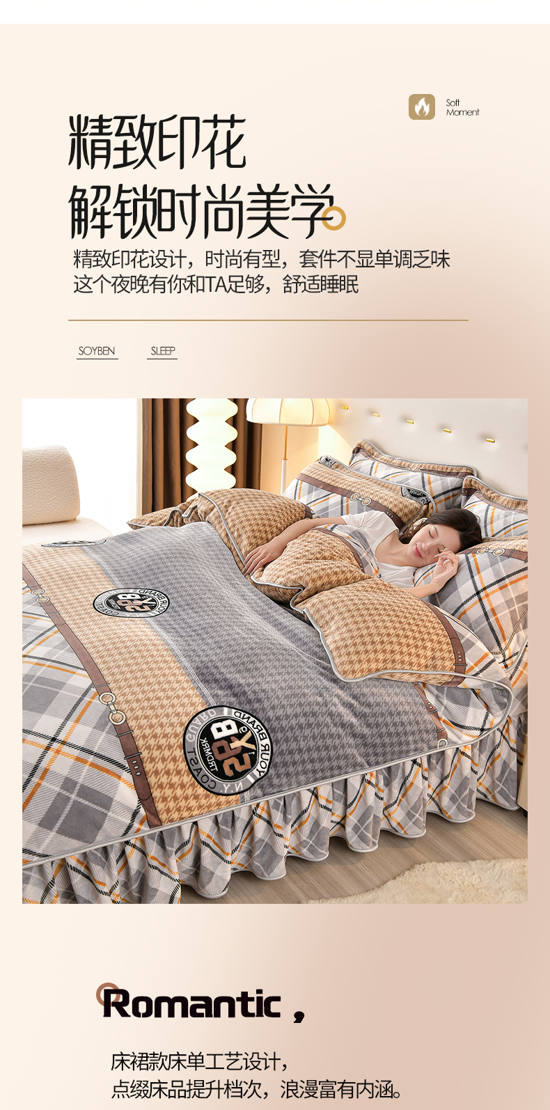 缘莉娜家纺 2025高克重8斤牛奶绒四件套金貂绒法莱绒加厚保暖直播电商爆款 辉煌人生