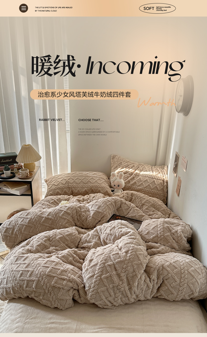 商品名称:艾咪-Amy ntmy 2025新款治愈系少女风塔芙绒牛奶绒四件套 玫粉