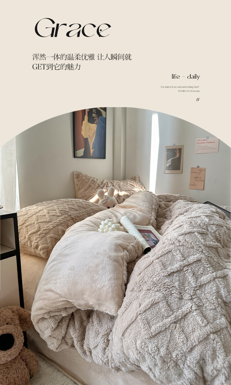 艾咪-Amy ntmy 2025新款治愈系少女风塔芙绒牛奶绒四件套 玫粉