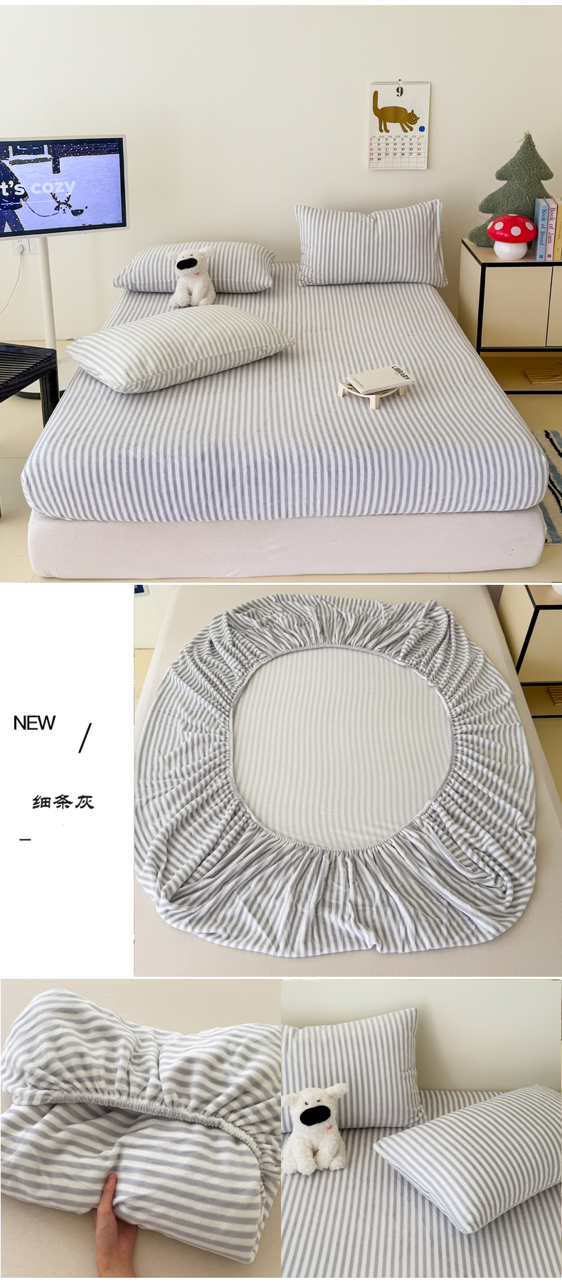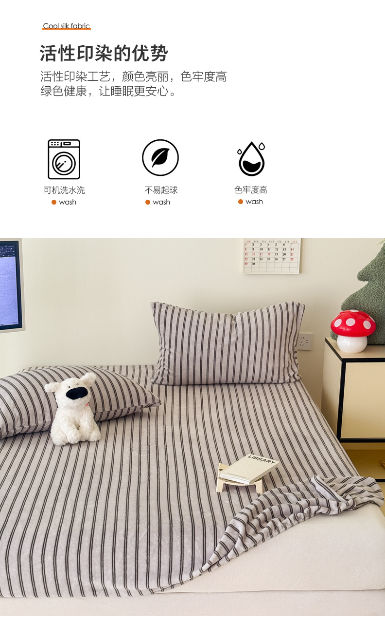 • 91家纺网 家纺一手货源 找家纺 三朵家纺 2025新款牛奶绒印花单床笠 床笠单件 细条粉