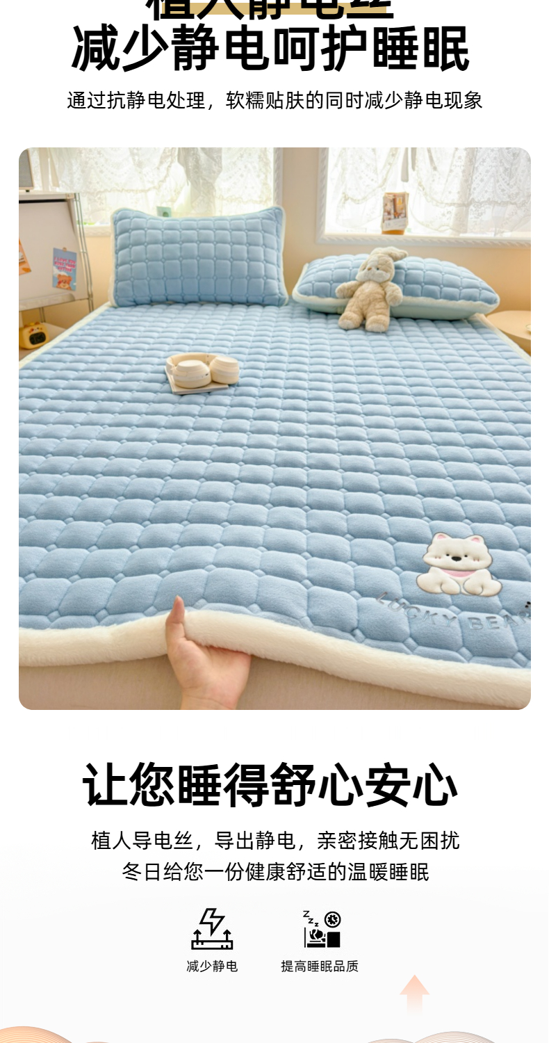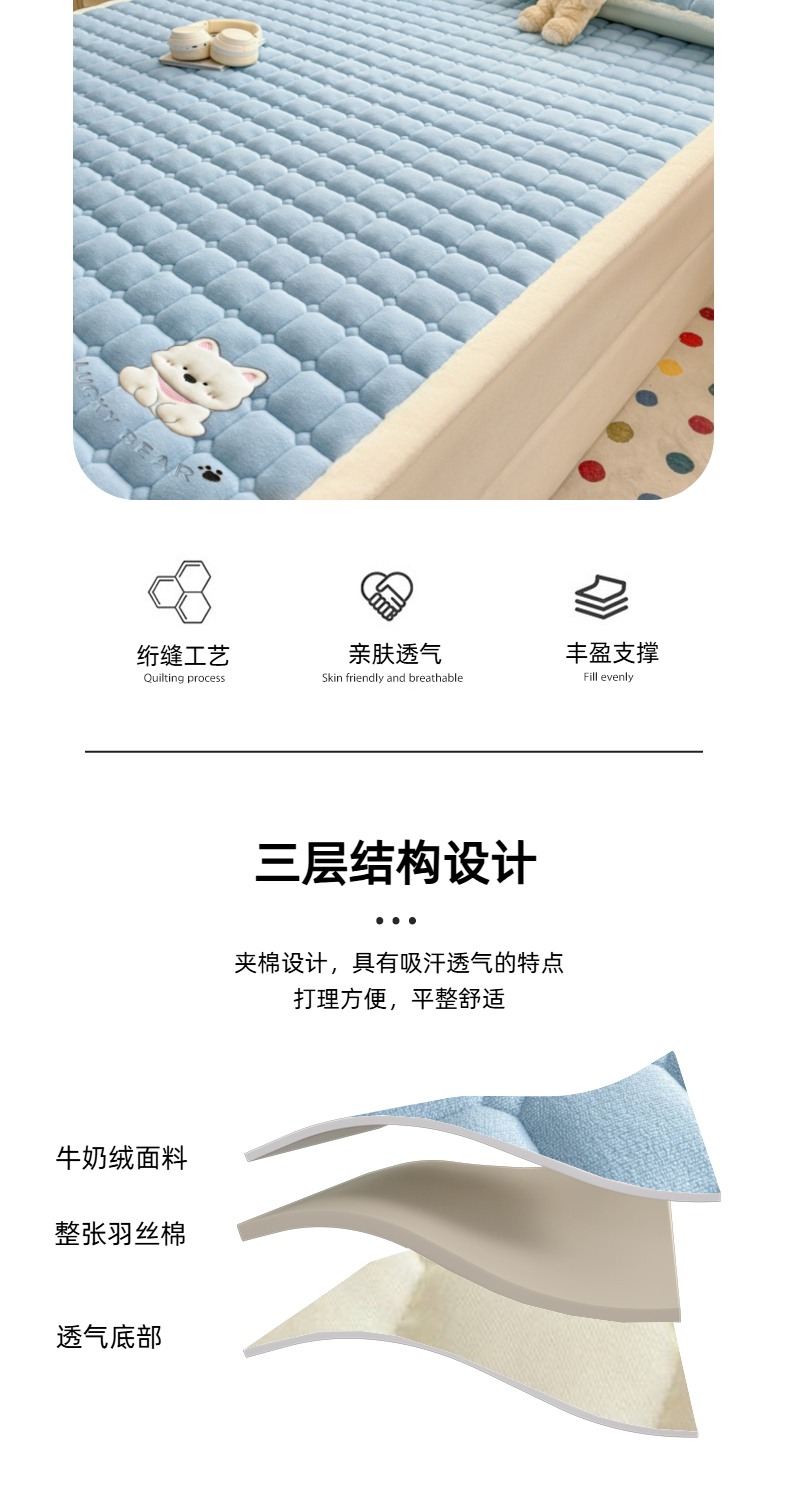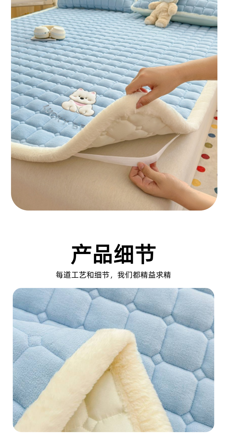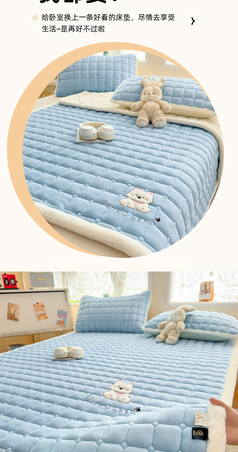 商品名称:(总)爱屋及屋 2025新款牛奶绒毛巾绣床垫软垫冬季加厚床褥垫子铺底床护垫【填充200g】