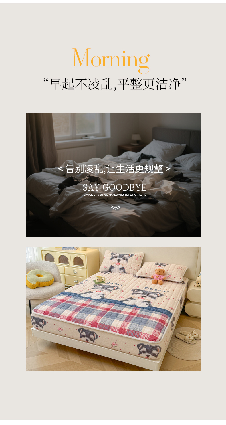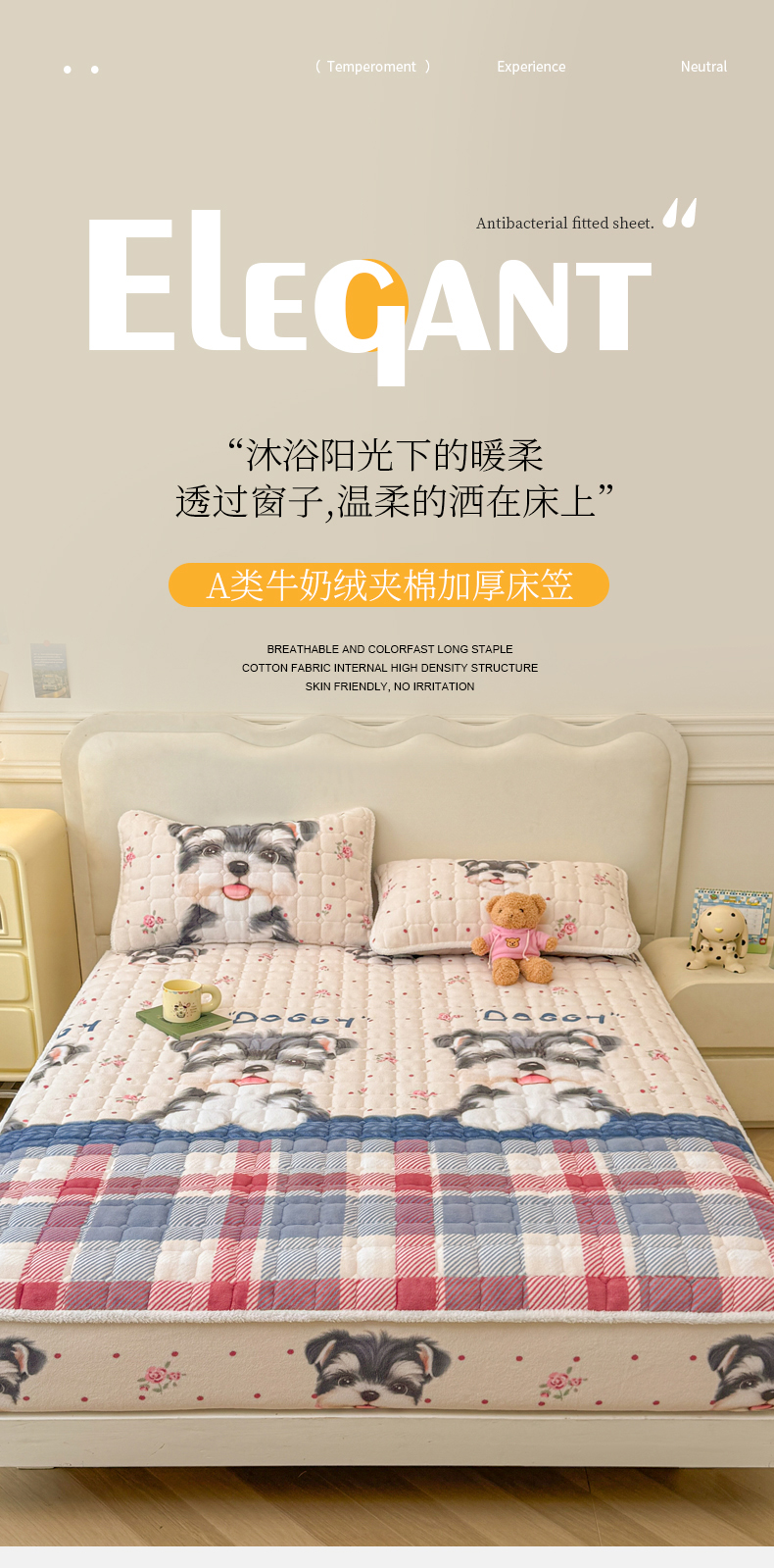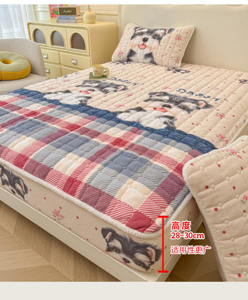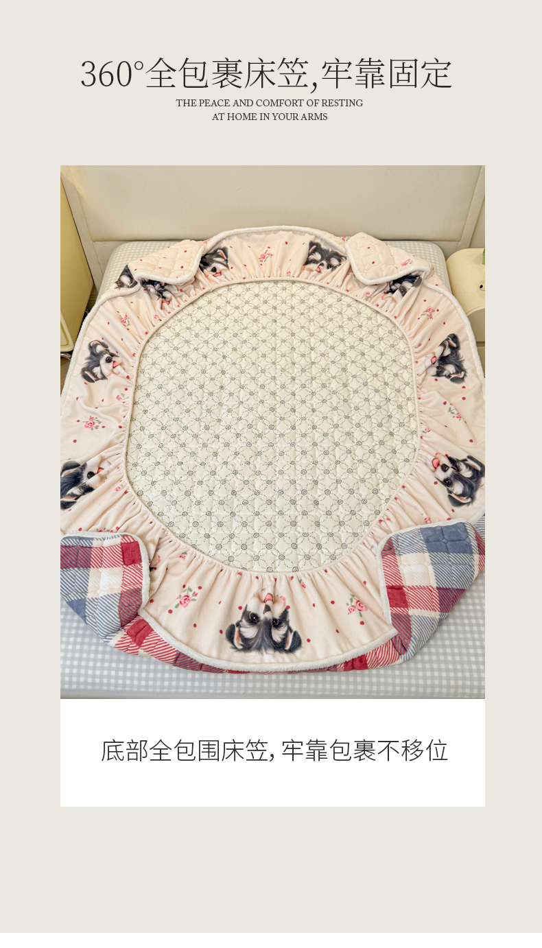• 91家纺网 家纺一手货源 找家纺 LIFE.丽芙 2025秋冬新款牛奶绒加厚夹棉单床笠印花款床垫子保护套秋冬保暖床罩子三件套 修狗
