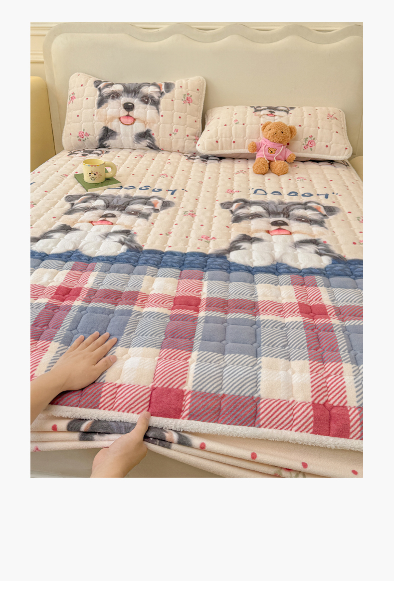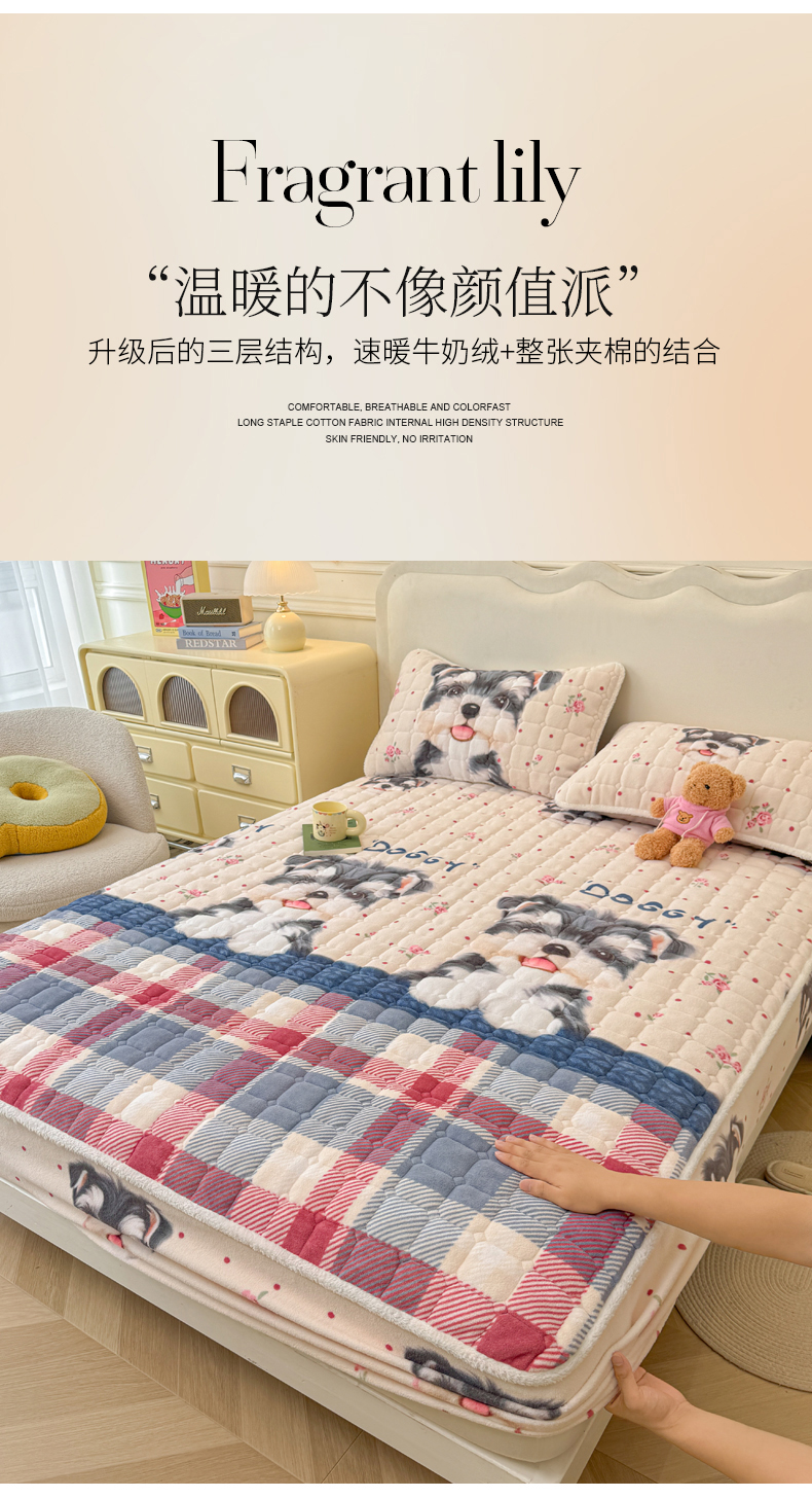 LIFE.丽芙 2025秋冬新款牛奶绒加厚夹棉单床笠印花款床垫子保护套秋冬保暖床罩子三件套 修狗