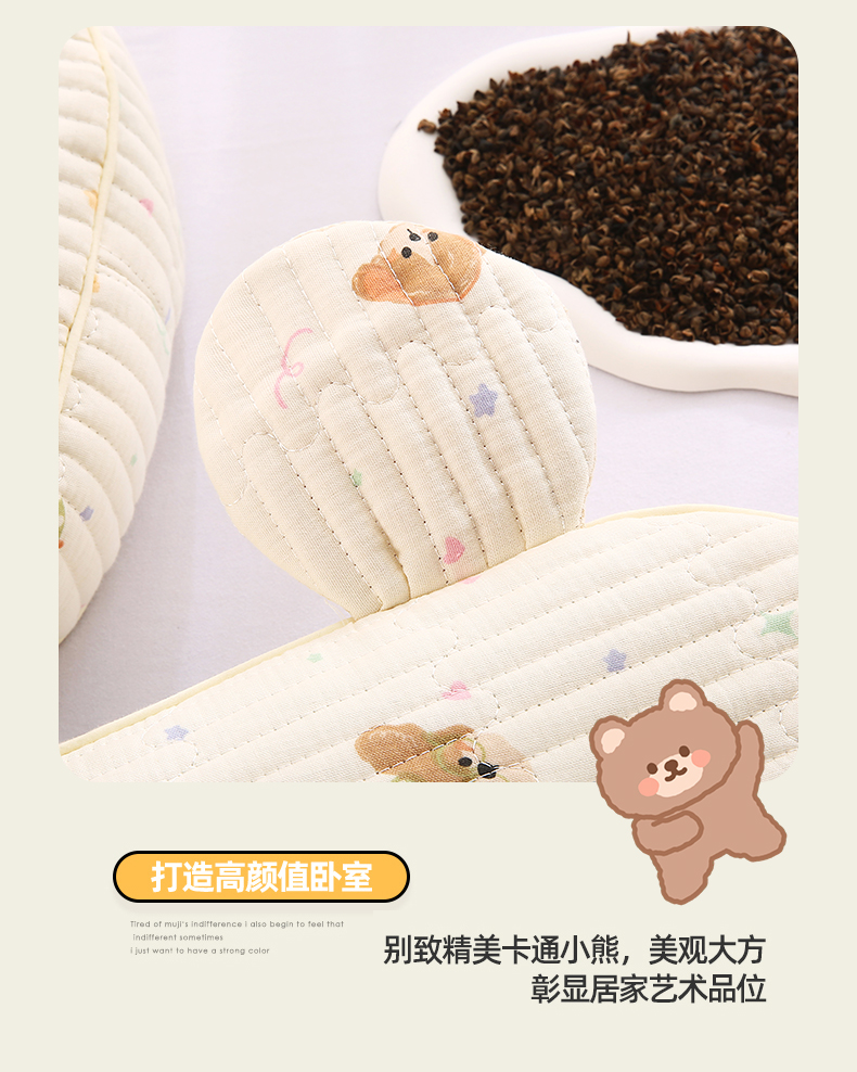 商品名称:橘夏家纺 2025新款米奇耳朵全棉双层纱枕头枕芯可拆洗可替换内胆荞麦壳枕头枕芯 清桃绿