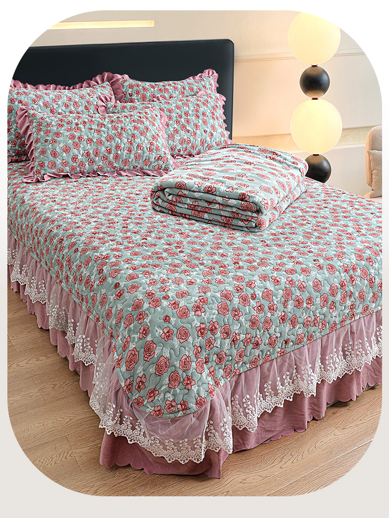 当前位置: 91家纺网 > 商品网购 > 床品套件 > 四件套 > 牛奶绒四件套 > 梦柏家纺 2025新款牛奶绒夹棉床盖四件套 粉色玫瑰