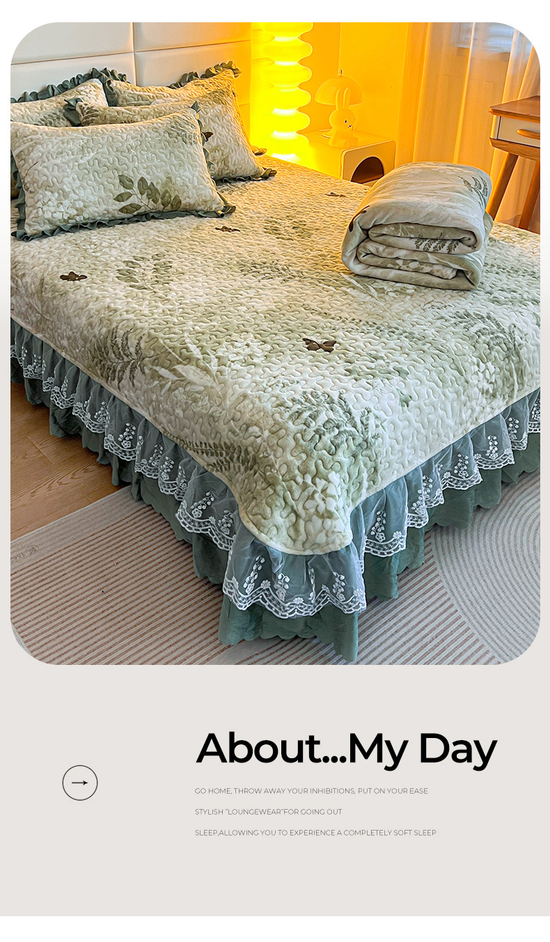 当前位置: 91家纺网 > 商品网购 > 床品套件 > 四件套 > 牛奶绒四件套 > 梦柏家纺 2025新款牛奶绒夹棉床盖四件套 沐晨