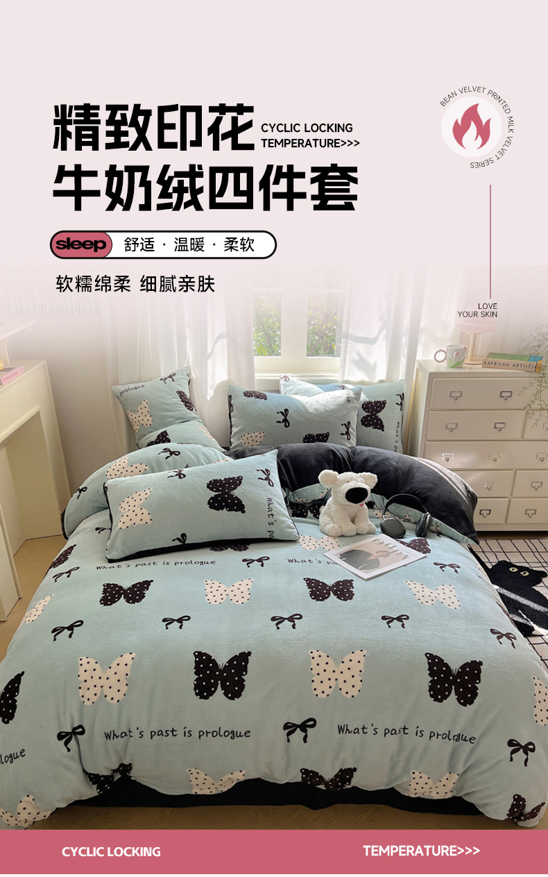 当前位置: 91家纺网 > 商品网购 > 床品套件 > 四件套 > 牛奶绒四件套 > 红嘴企鹅 2025新款精致印花牛奶绒四件套 魅力蝴蝶