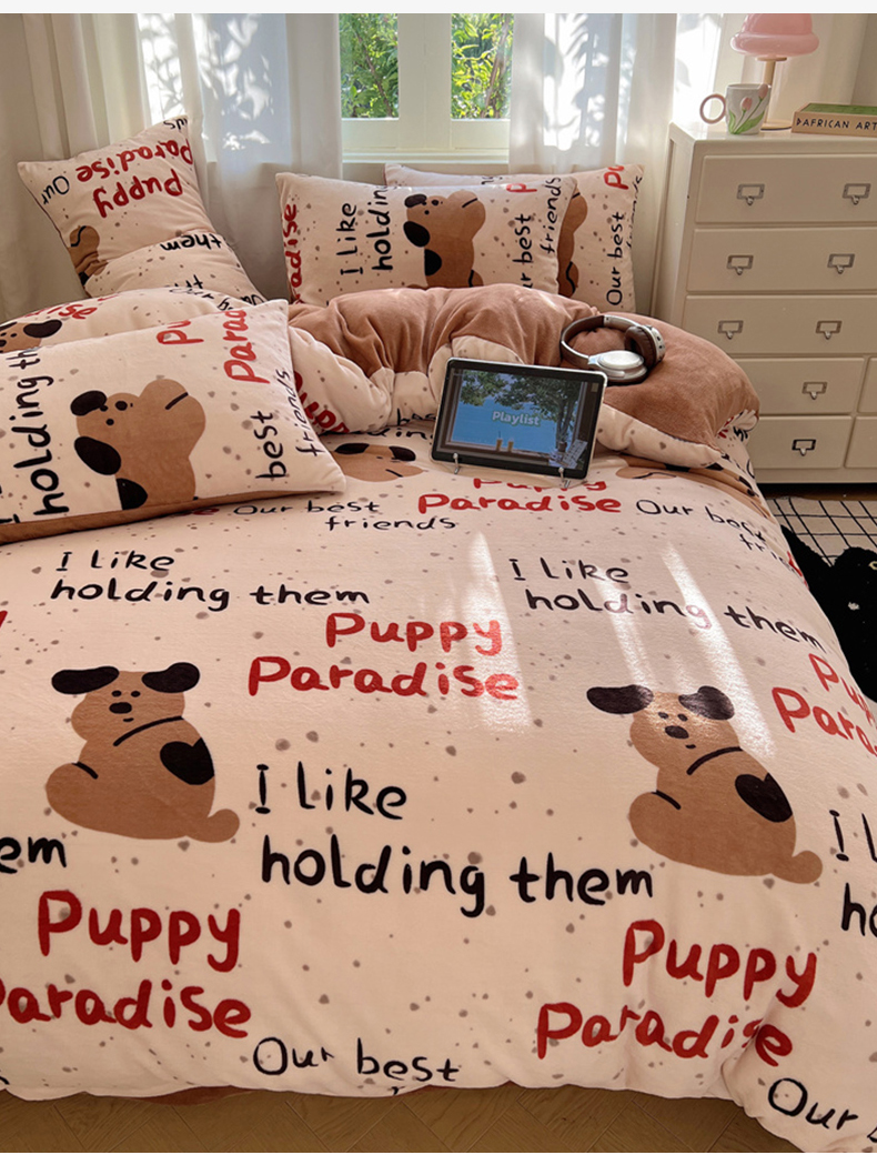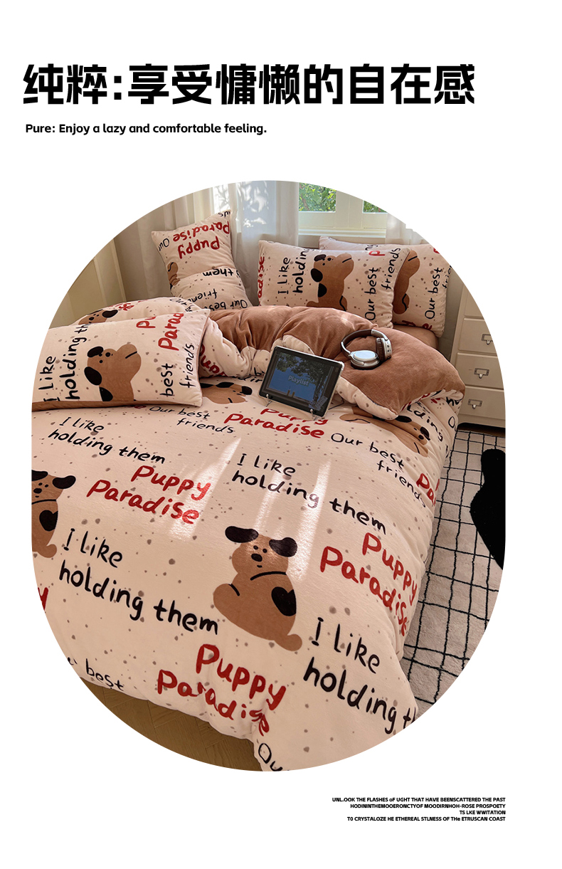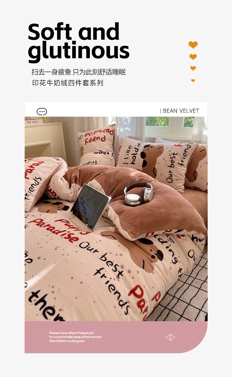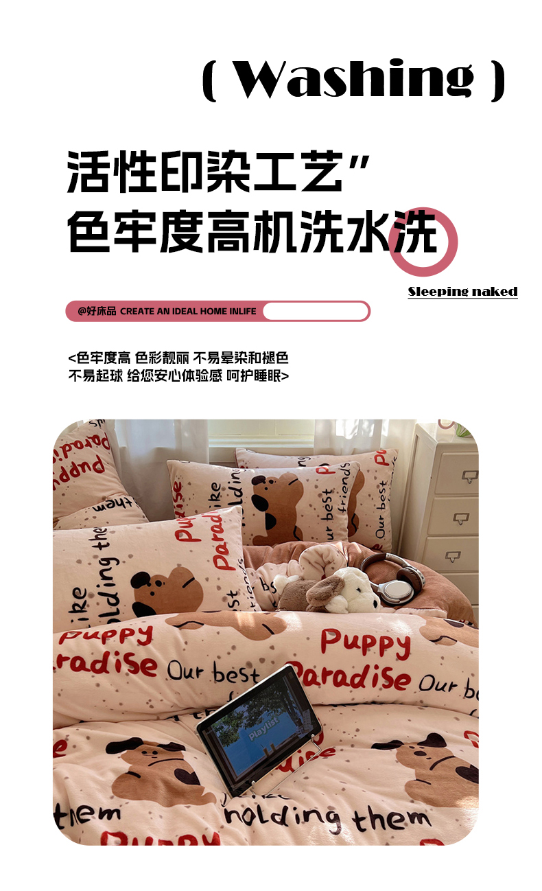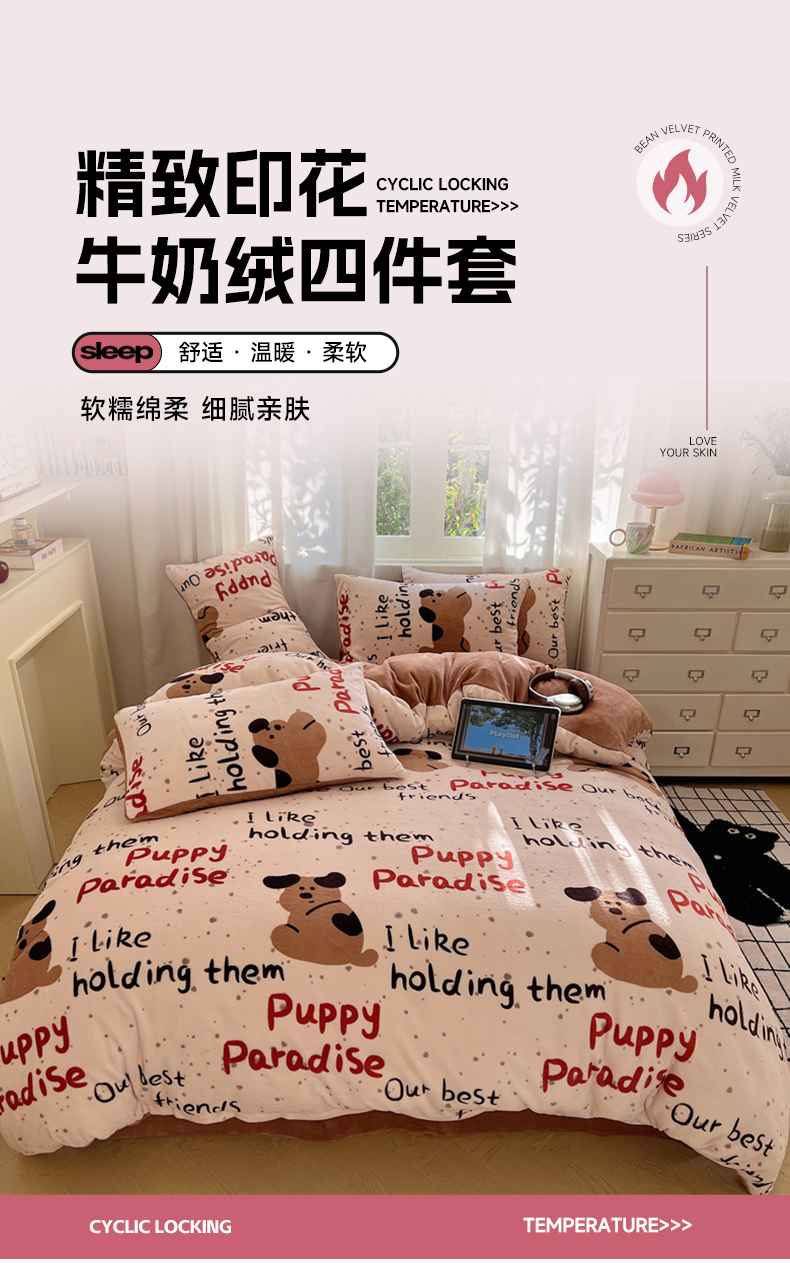 当前位置: 91家纺网 > 商品网购 > 床品套件 > 四件套 > 牛奶绒四件套 > 红嘴企鹅 2025新款精致印花牛奶绒四件套 淘气狗