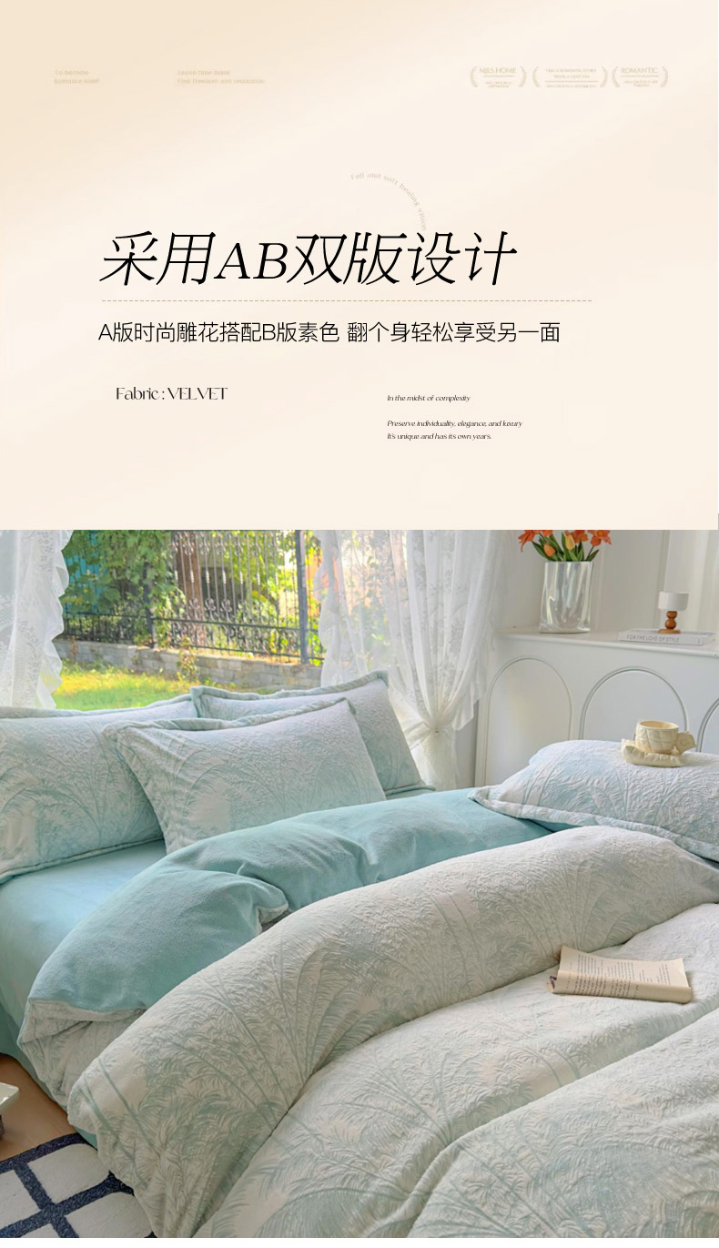 (总)昊川家纺 2025新款小清新牛奶绒雕花图毛绒包边系列四件套,蝶影玫瑰-蓝,繁花朵朵,蕾丝公主,墨花如梦,暖杏花语,浅草听风,浅蓝叶梦,且听风吟-浅绿,如梦令-豆沙,如梦令-绿,山茶花-咖,碎花漫语,甜心玫瑰,织梦-咖,竹蝶伴眠,竹影清眠,紫梦絮语