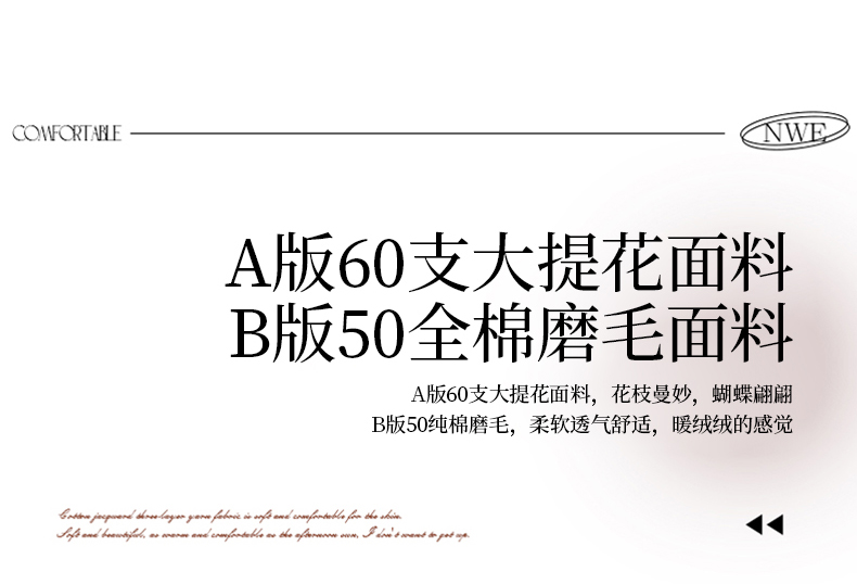 商品名称:(总)淑女公社家纺 2025秋冬新款60支大提花全棉磨毛四件套-花语漫漫