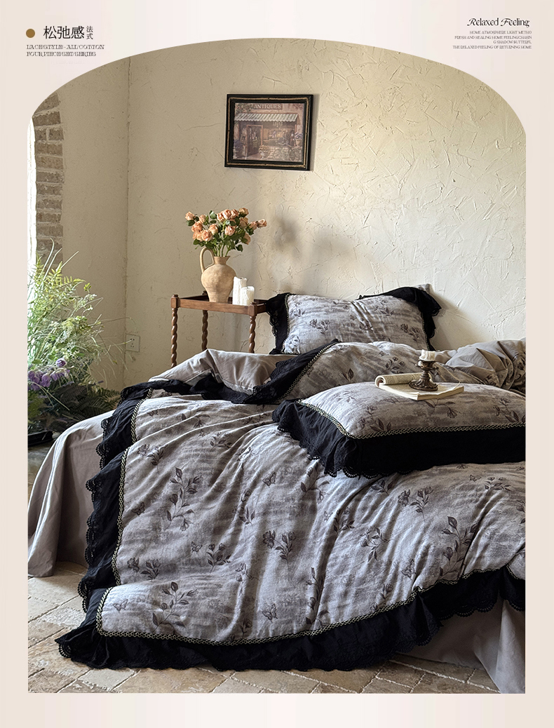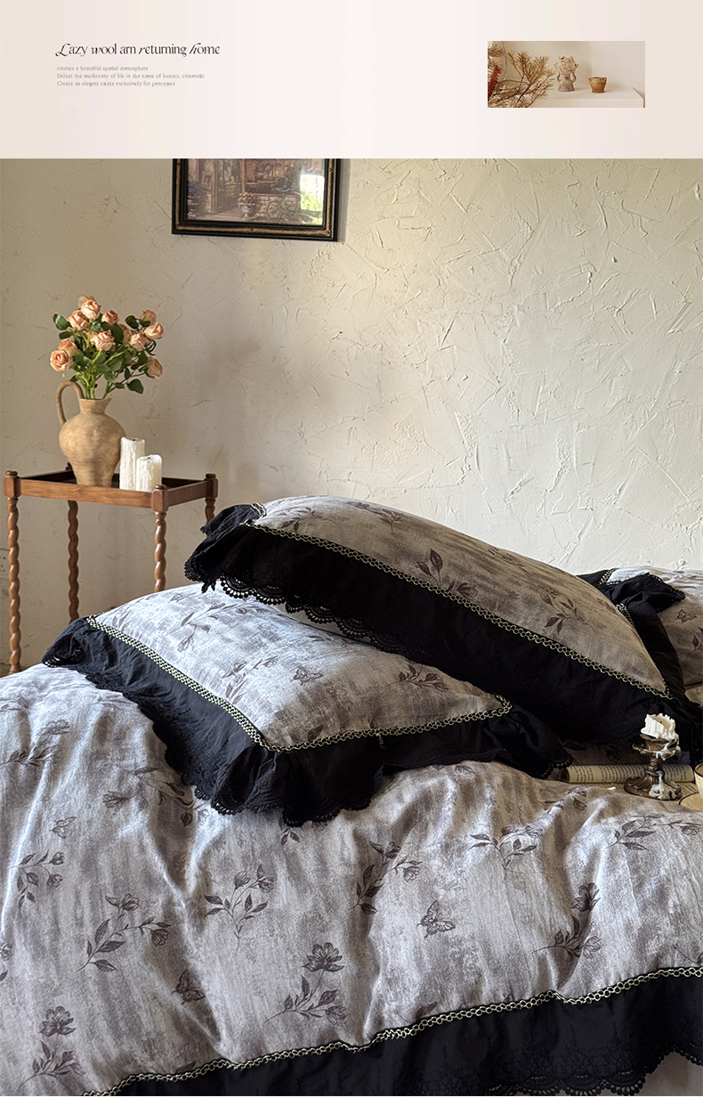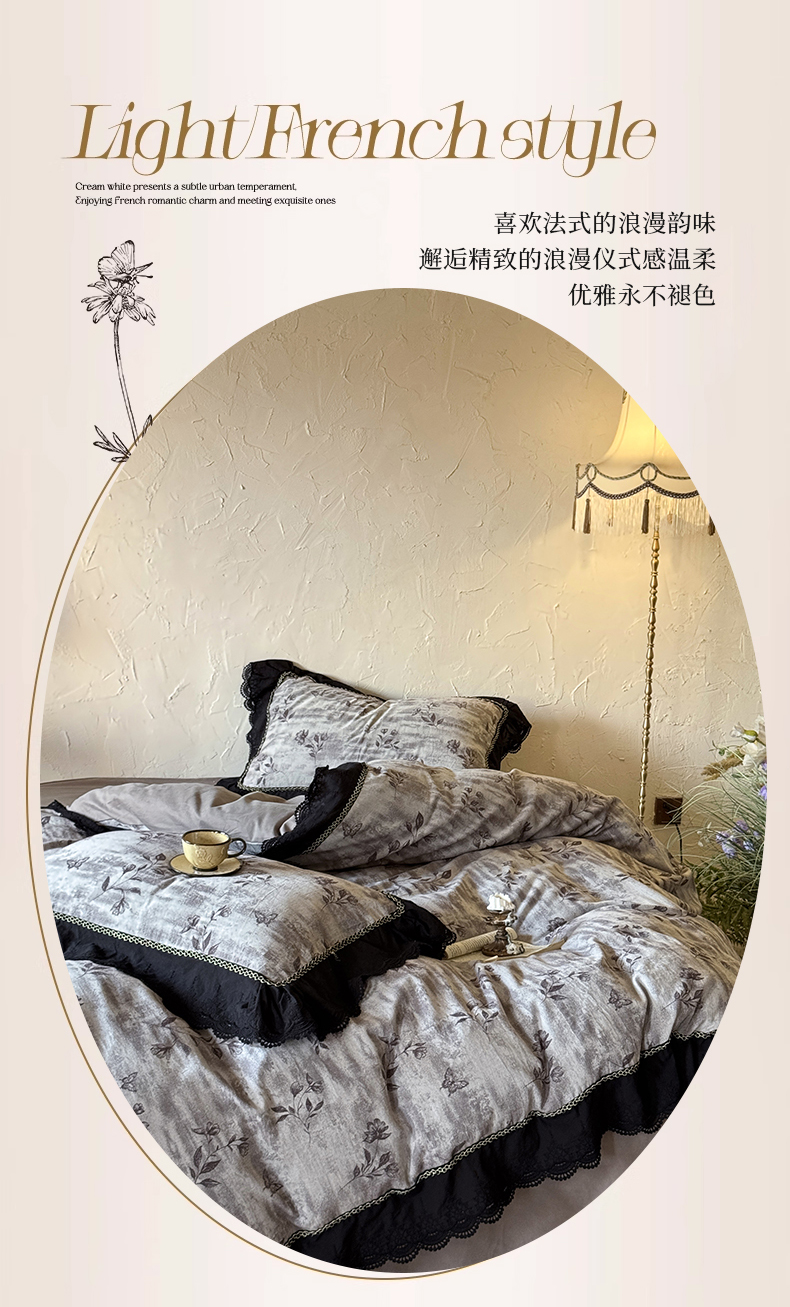 (总)淑女公社家纺 2025秋冬新款法式空气提花皱皱纱四件套-蝶舞,蝶舞 静谧蓝,蝶舞 摩卡棕,蝶舞 抹茶绿,蝶舞 太空灰
