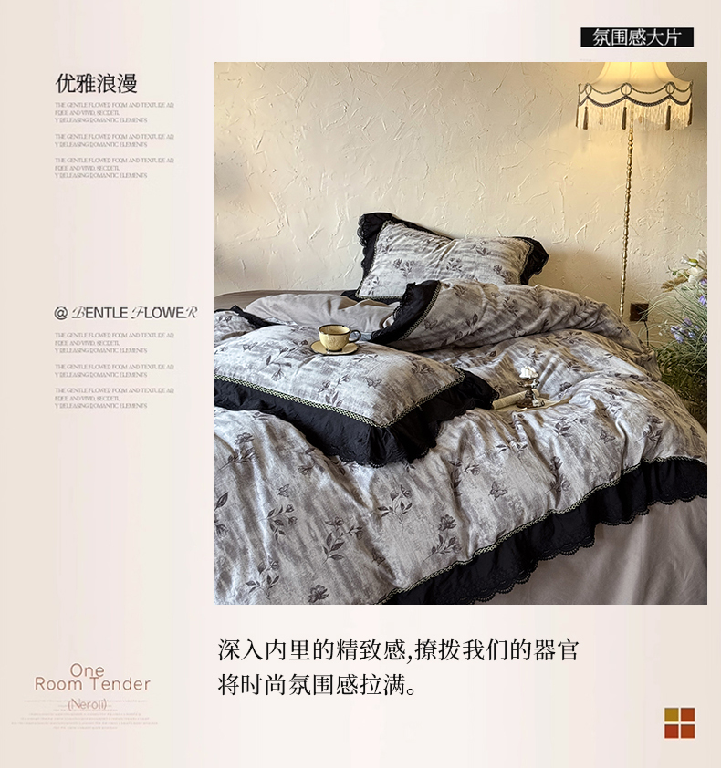 (总)淑女公社家纺 2025秋冬新款60支大提花全棉磨毛四件套-花语漫漫