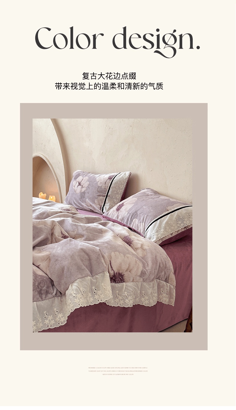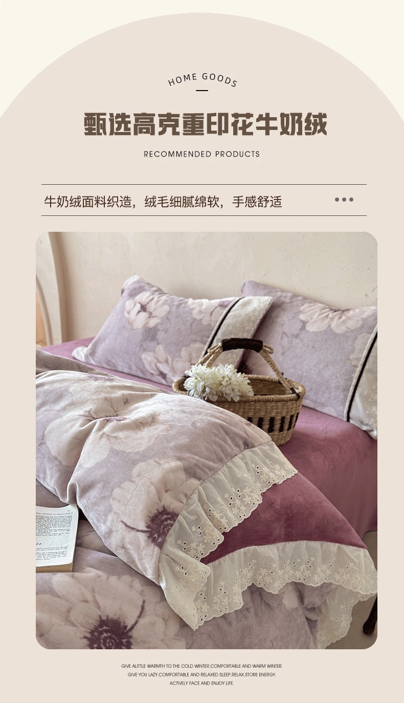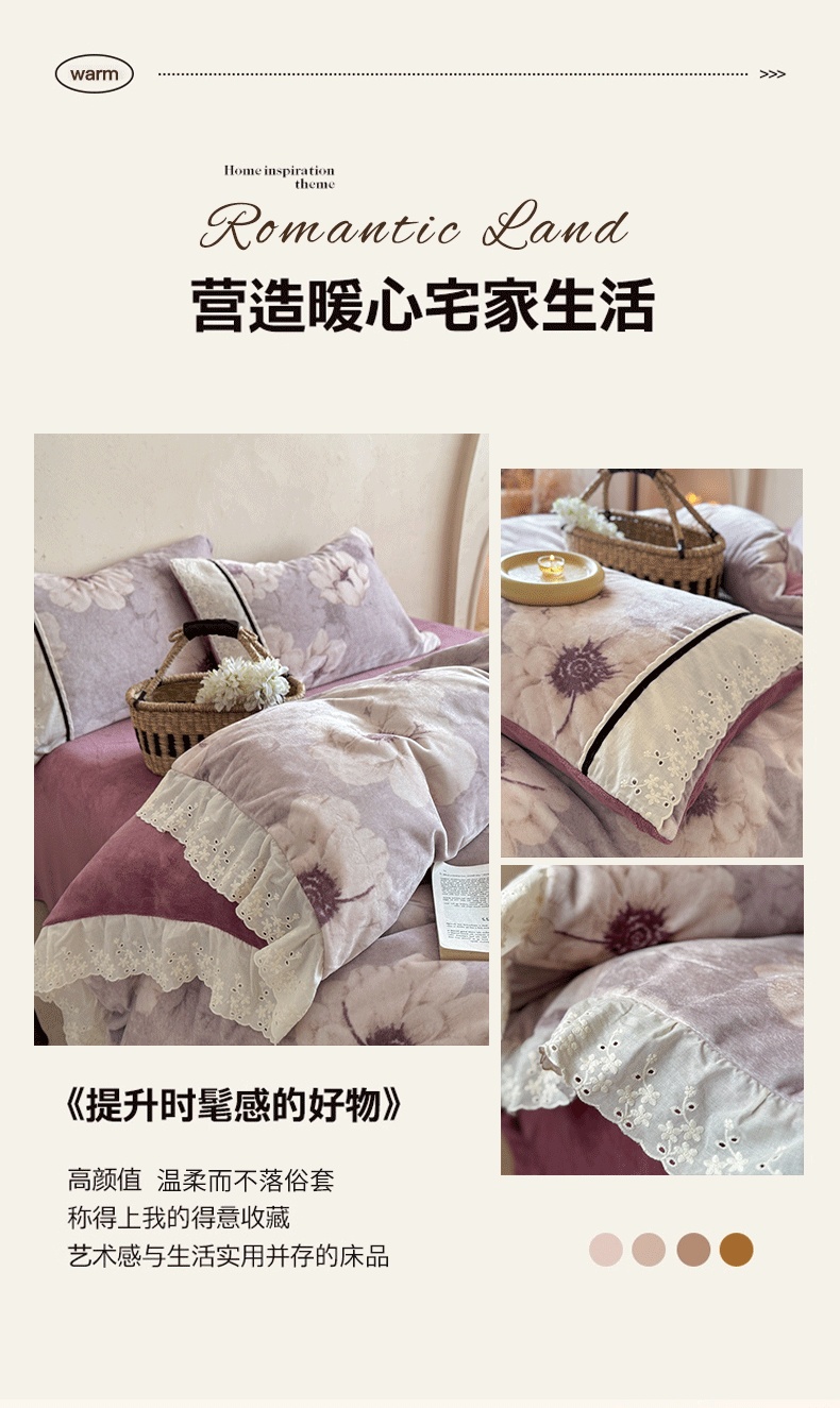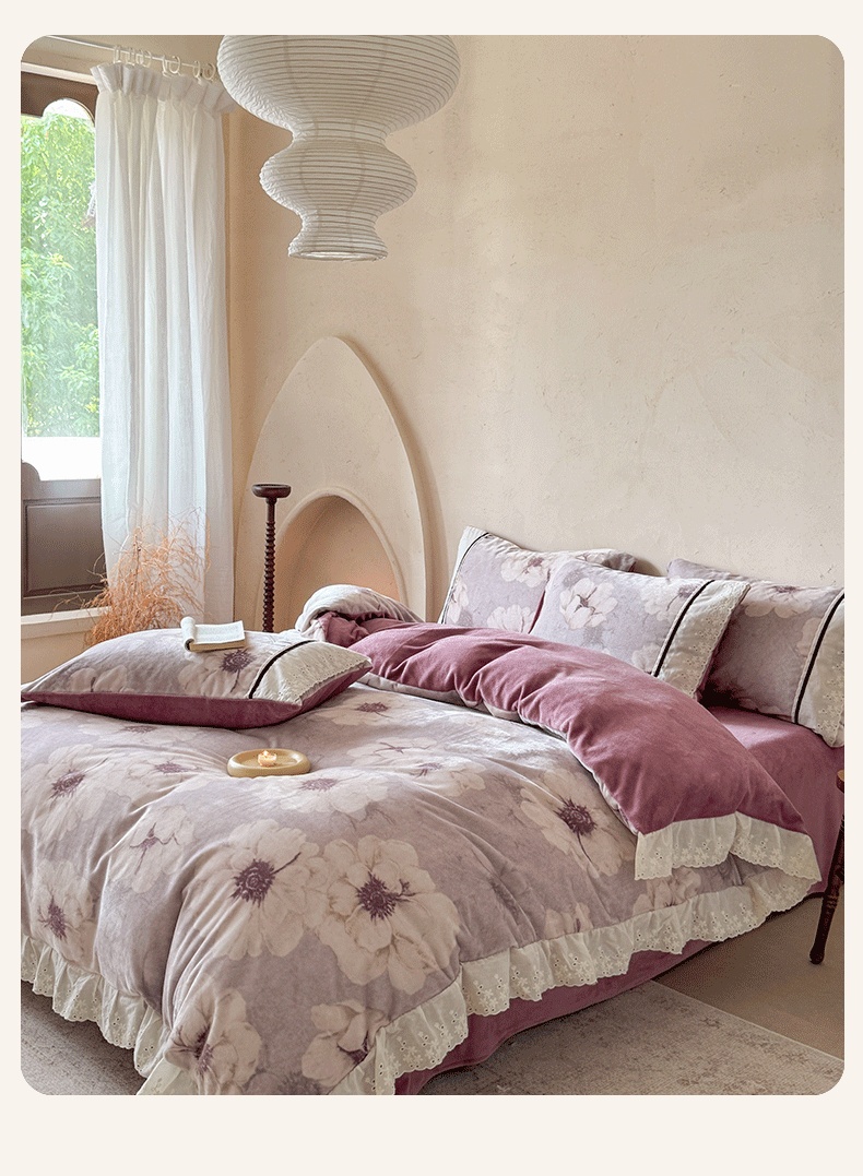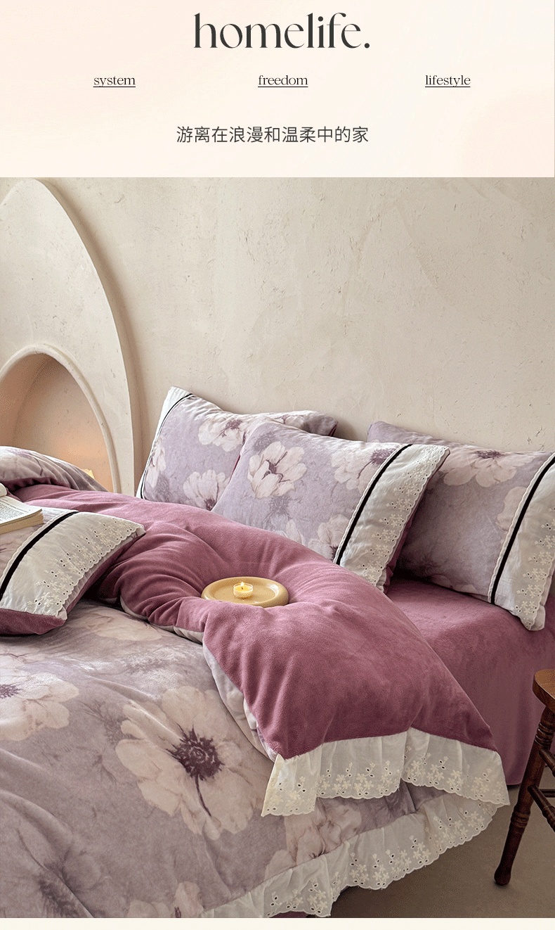 当前位置: 91家纺网 > 商品网购 > 床品套件 > 四件套 > 牛奶绒四件套 > 花漾家居 2025新款法式复古绣花花边款牛奶绒四件套 虞美人
