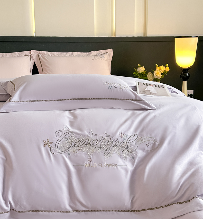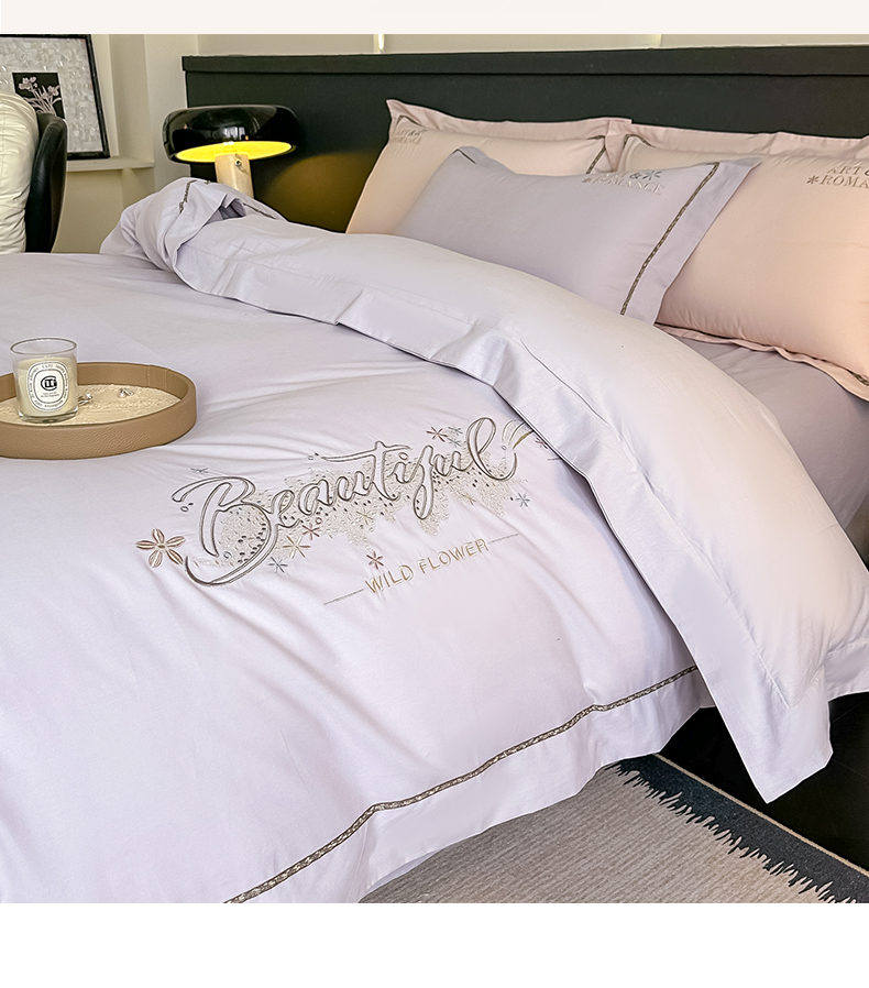 曲之慕 2025新款高端全棉纯棉长绒棉磨毛刺绣四件套【高端礼盒】 梧桐灰