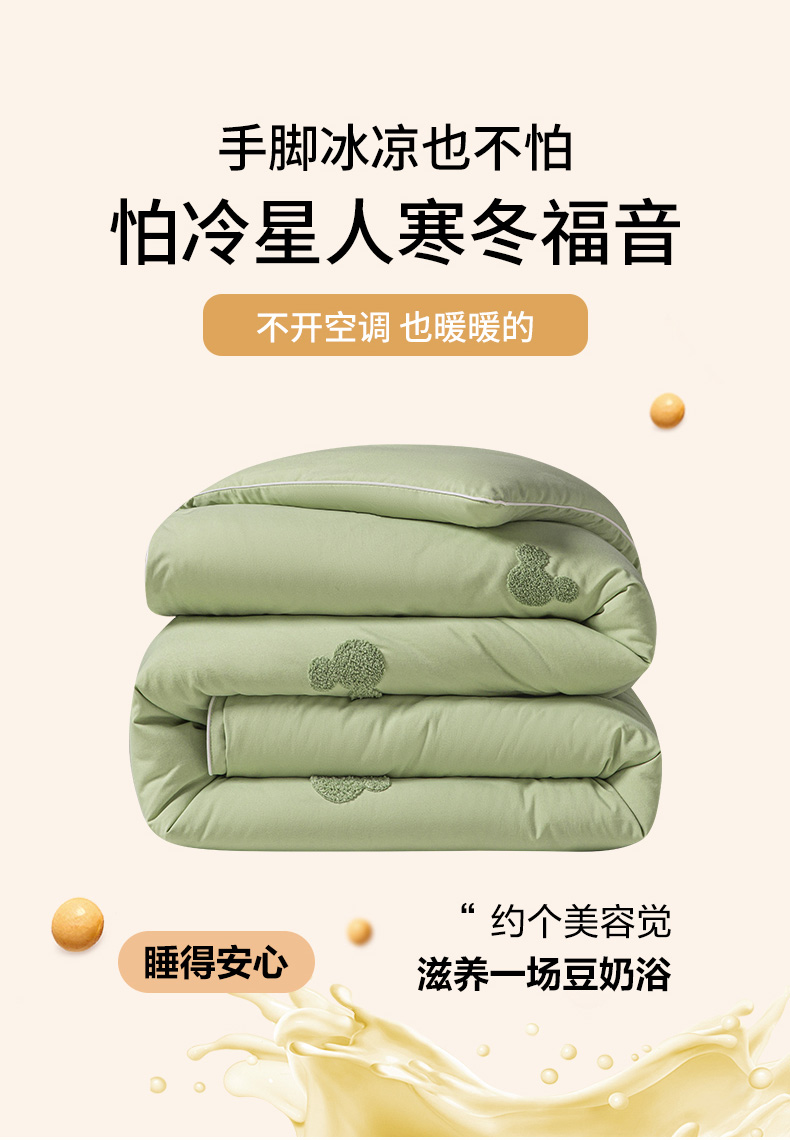 一加一 2025新款中科院抗菌毛巾刺绣大豆被被子被芯-米奇 米奇-绿