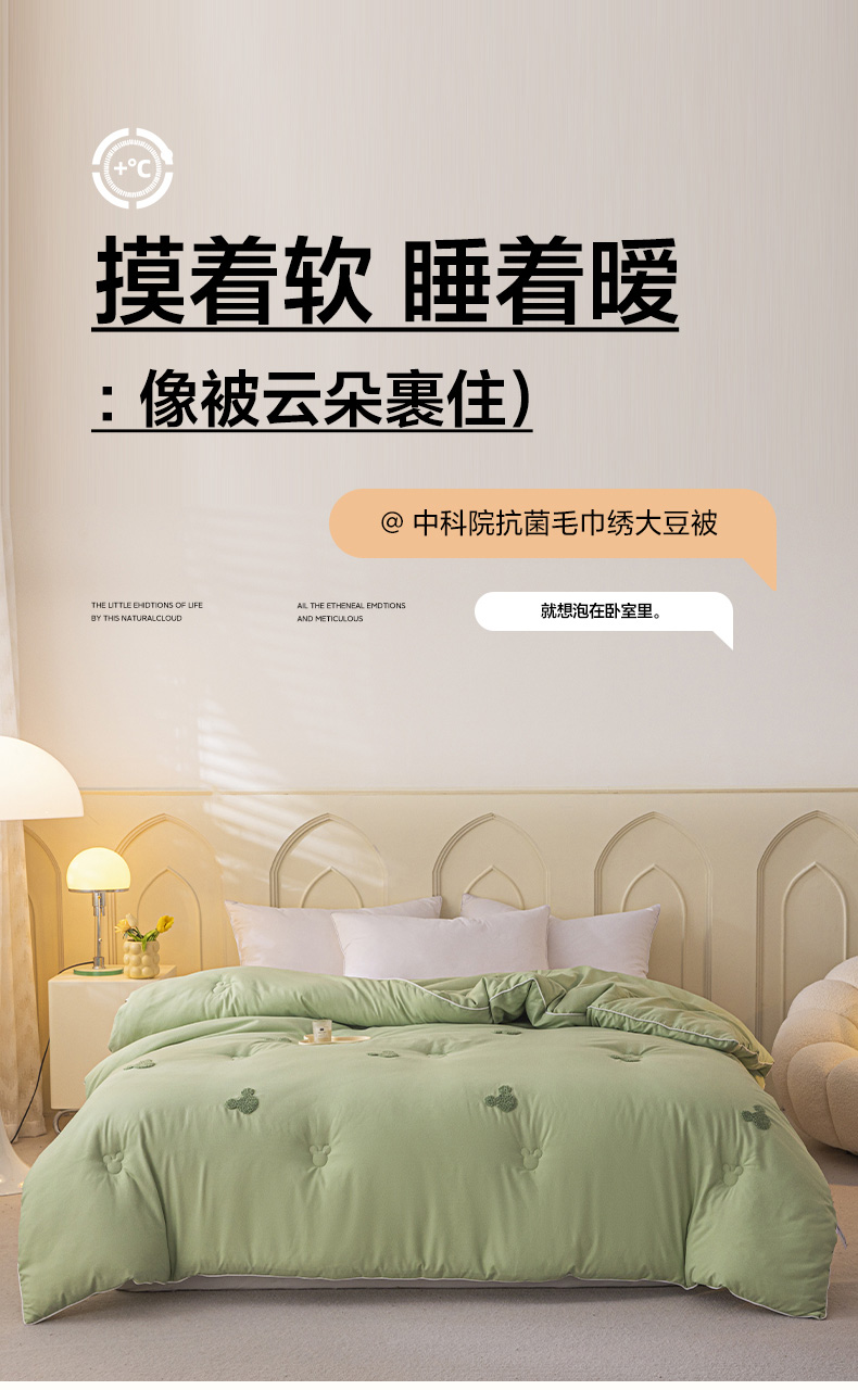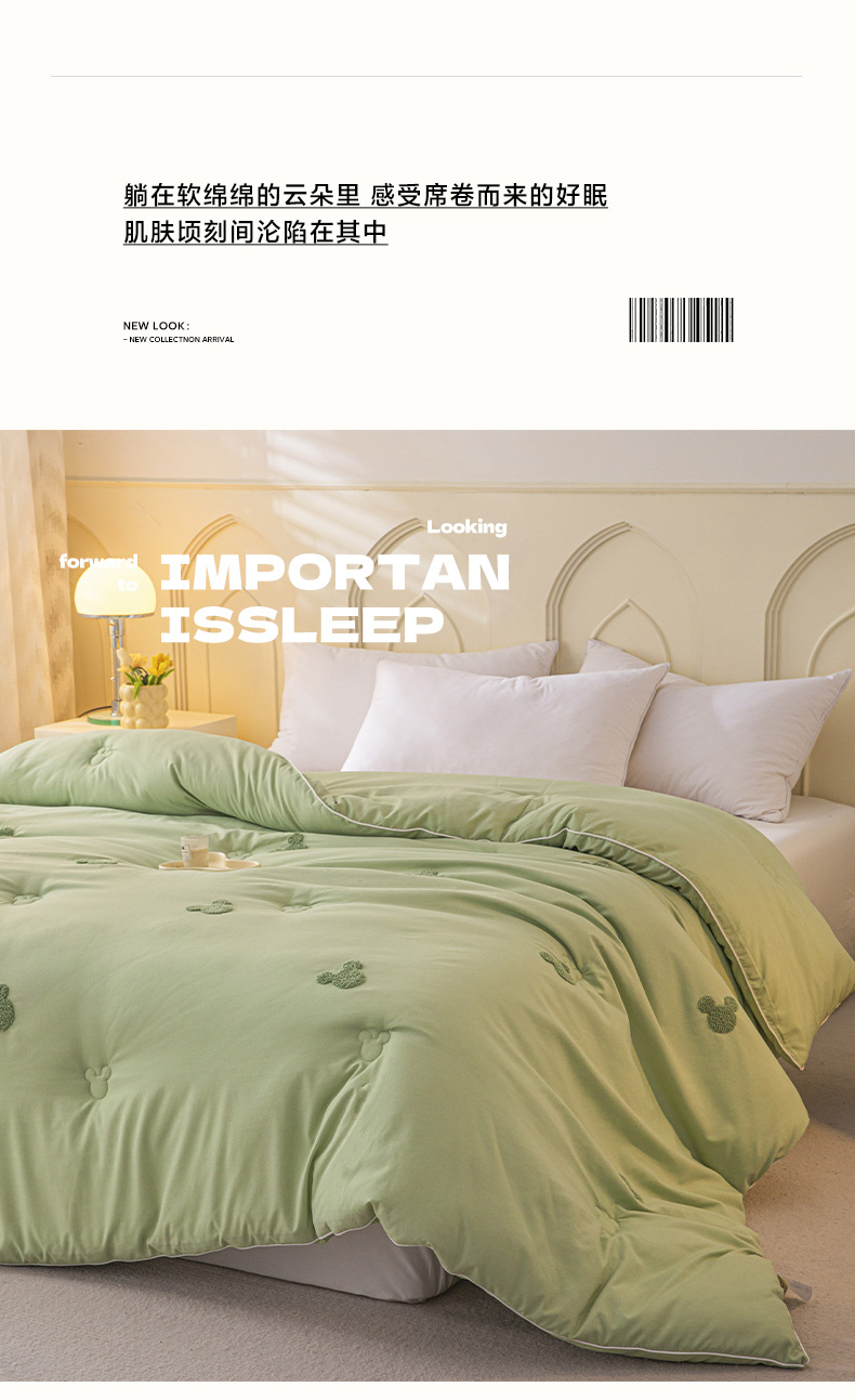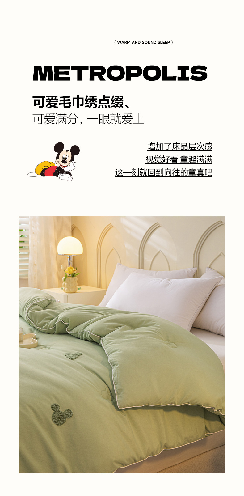 • 91家纺网 家纺一手货源 找家纺 一加一 2025新款中科院抗菌毛巾刺绣大豆被被子被芯-米奇 米奇-绿