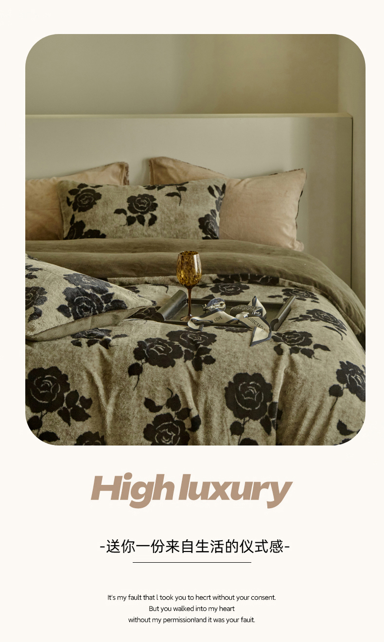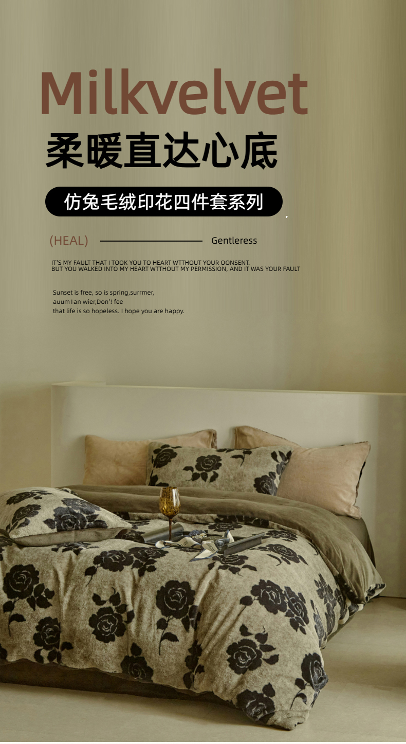 当前位置: 91家纺网 > 商品网购 > 床品套件 > 四件套 > 其它四件套 > 缘生活 2025新款仿兔毛绒印花四件套 仿兔毛绒 玫瑰-墨绿