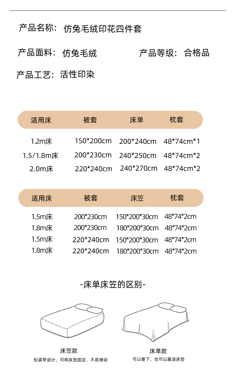 【床笠款】1.8四件套-被套220x240 | ¥105.00 |