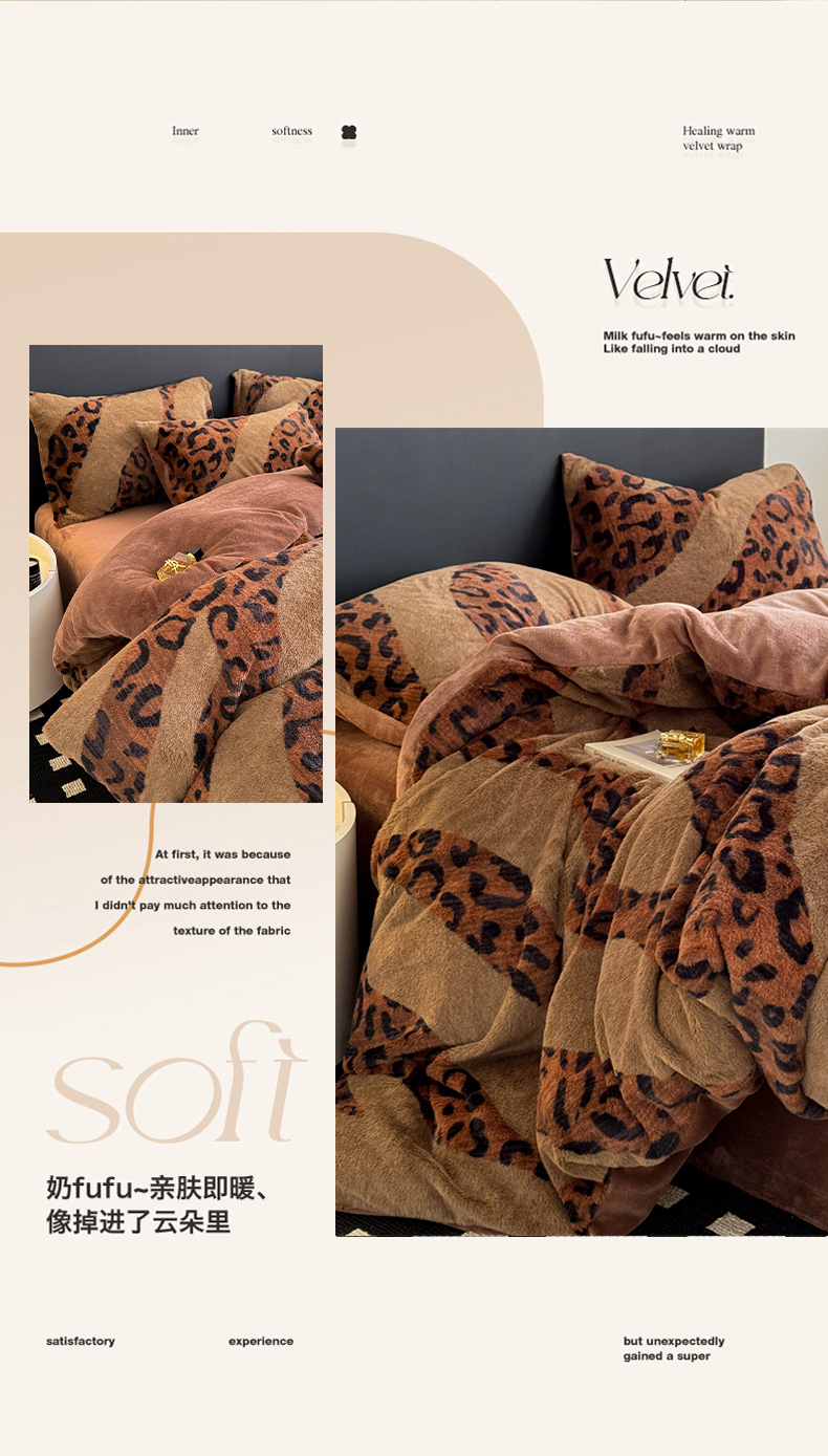 当前位置: 91家纺网 > 商品网购 > 床品套件 > 四件套 > 其它四件套 > 眠博士 2025新款轻奢款美拉德印花兔兔绒四件套 豹纹冬日咖
