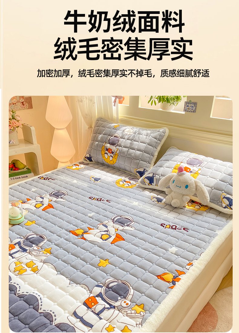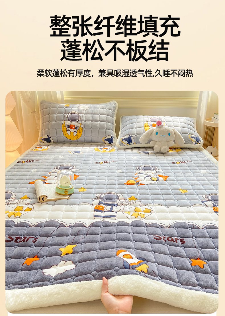 当前位置: 91家纺网 > 商品网购 > 床垫/床褥 > 普通床垫 > 家喜爱 2025新款亲肤牛奶绒加厚床垫-成人款 太空人